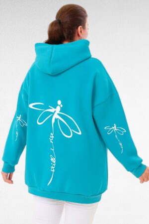 Pikk kapuutsiga taskutega pluss suuruses naiste jakk/dressipluus (SP.089)