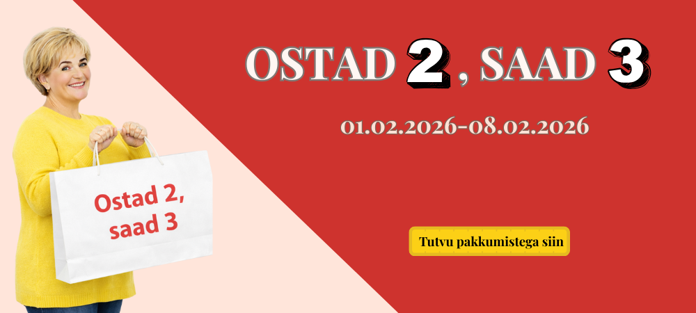 Ostes kategooriast „Ostad 2, saad 3“ 2 soodushinnaga toodet, saad kolmanda – soodsama hinnaga toote – tasuta juurde.