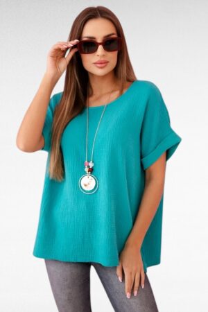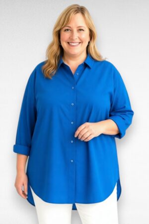 Sooja voodriga türkiissinine pluss suurus naiste dressipluus (SP.047)