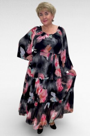 Luksuslik must suure lillemustriga satsiline pidulik kleit (KL.247)