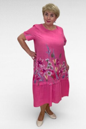 Erksinine roosa liblikamustriga alt satsiga kleit “Sanna” (KL.676)