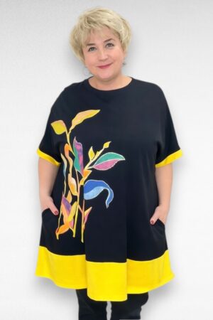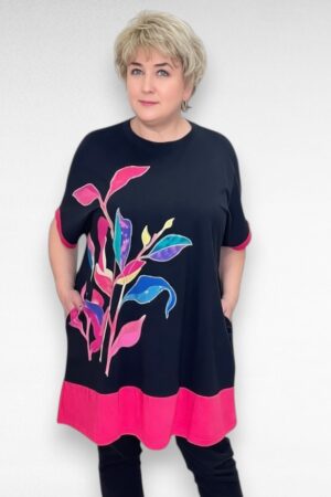 Must lillemustriga pluss suuruses taskutega tuunika “Fly Out” (TU.091)
