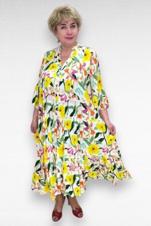 Värvikirev kollasekirju satsiline taskutega pikk pluss suurus naiste kleit (KL.175)
