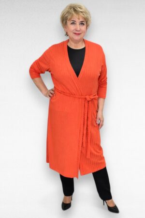 Pikk triibulise koemustriga viskooskangast vööga naiste kardigan ( KA.055)