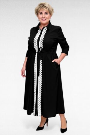 Eest nööpidega pluss suuruses tunnelvööga pikk naiste kleit (KL.146)