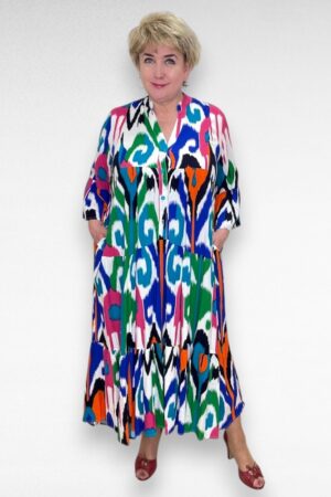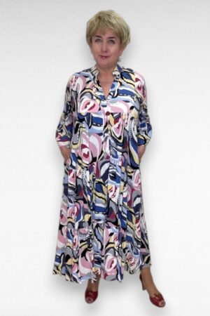 Värvikirev satsiline taskutega pikk pluss suurus naiste kleit (KL.174)