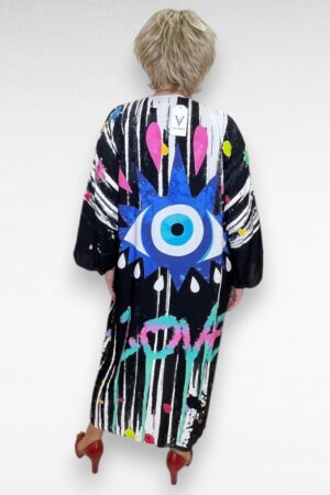 Must kirju mustriga pluss suuruses taskutega pikk disainkleit Itaaliast (KL.166)