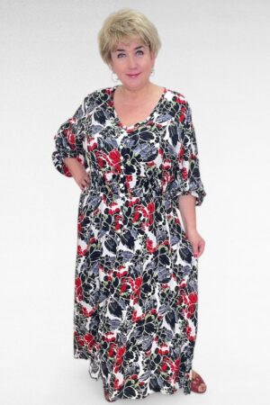 Punasekirju eest nööpidega pluss suuruses naiste suvekleit/maksikleit (KL.107)