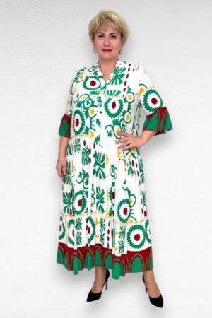 Värvikirev rohelisekirju satsiline taskutega pluss suurus kleit (KL.775)