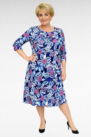 KL.776 – Tumesinine kirju lillemustriga taskutega naiste kleit “Miss Classic”