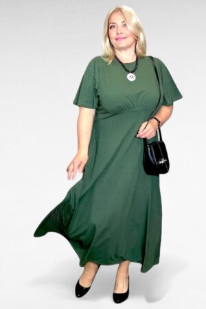 KL.286 – Roheline triibulise koemustriga taskutega kleit “Sirve”