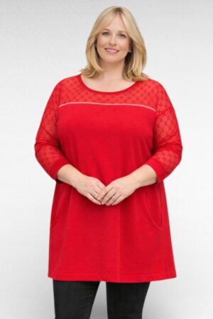 TU.238 – Pidulik punane pitsiline taskutega puuvillane tuunika “Velli”