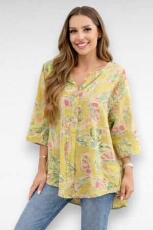 Lille- ja liblikamustriga puuvillane pluus (PL.605)