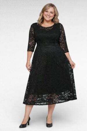 KL.872 – Pidulik V-kaelusega sissepressitud sätendava mustriga kleit