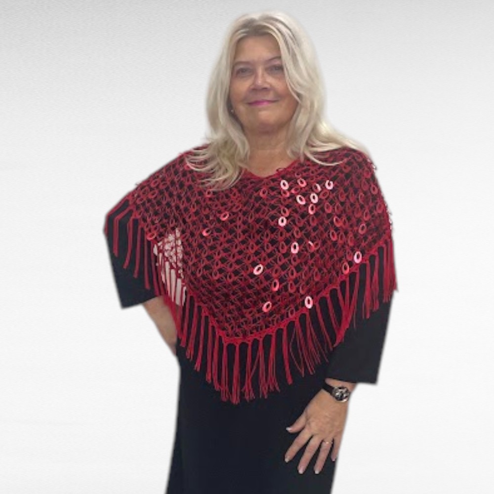 Punane sätendav otsast narmastega boolero Inglismaalt.