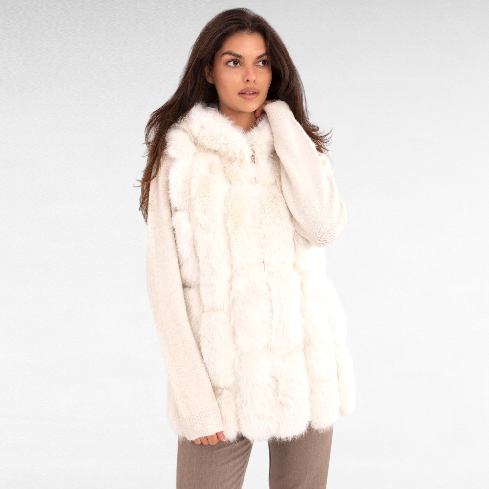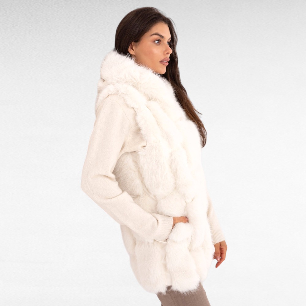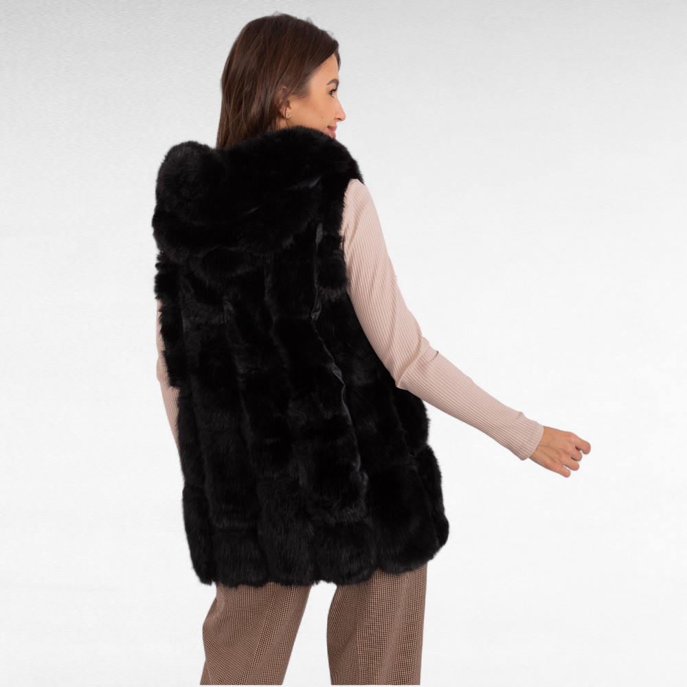 Superpehme soe karvane kapuutsiga eest lukuga taskutega vest Itaaliast! Taskute ääres nahk. Näeb välja nagu ehtne jänesenahk. Ülisoe ja mõnus. Sees vooder ja see karvaosa on hästi mõnusalt paks ja kohev. Väga kvaliteetne, seda ei tahagi seljast ära võtta, nii soe on.
