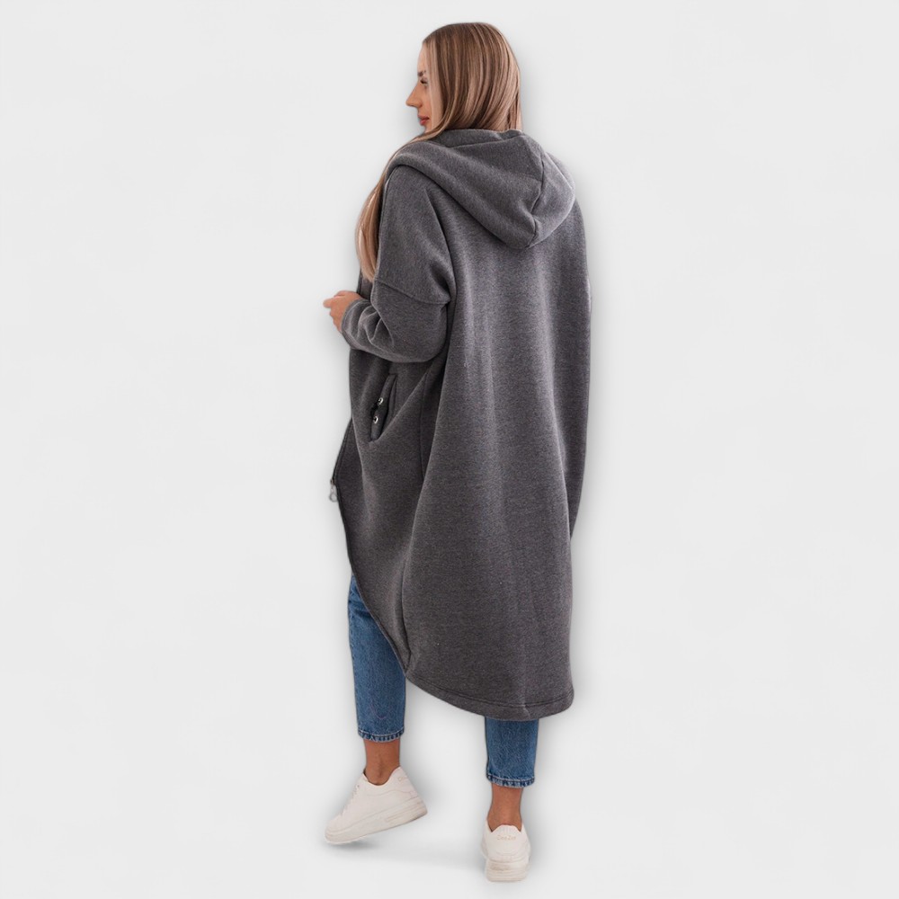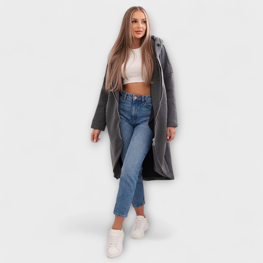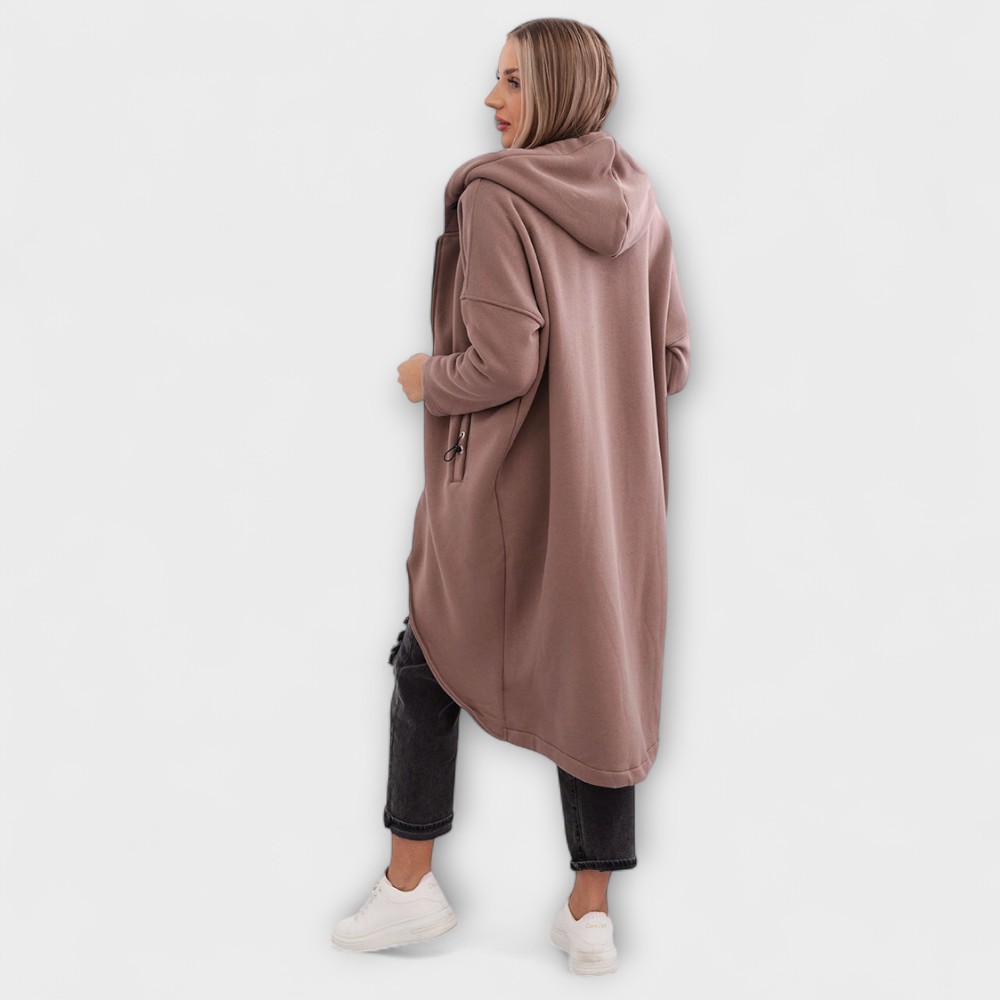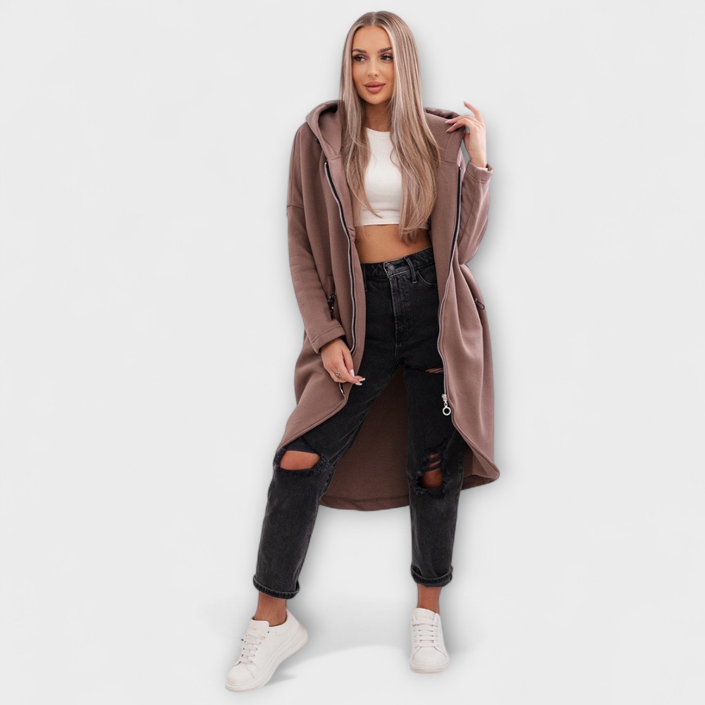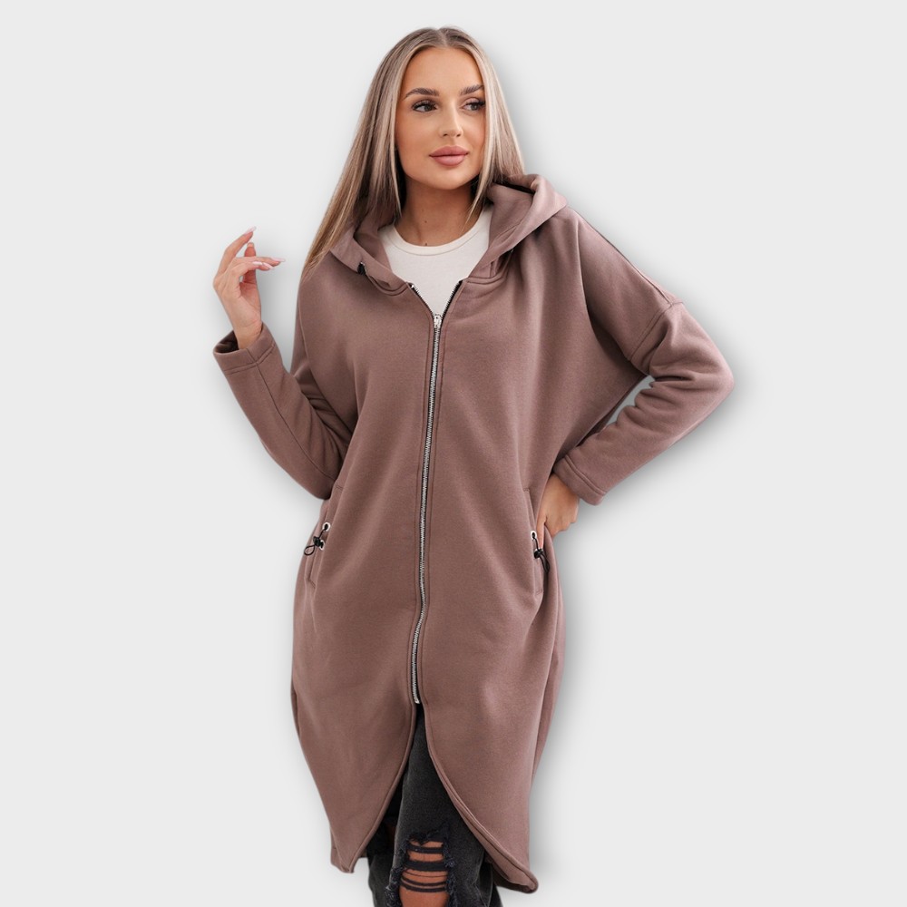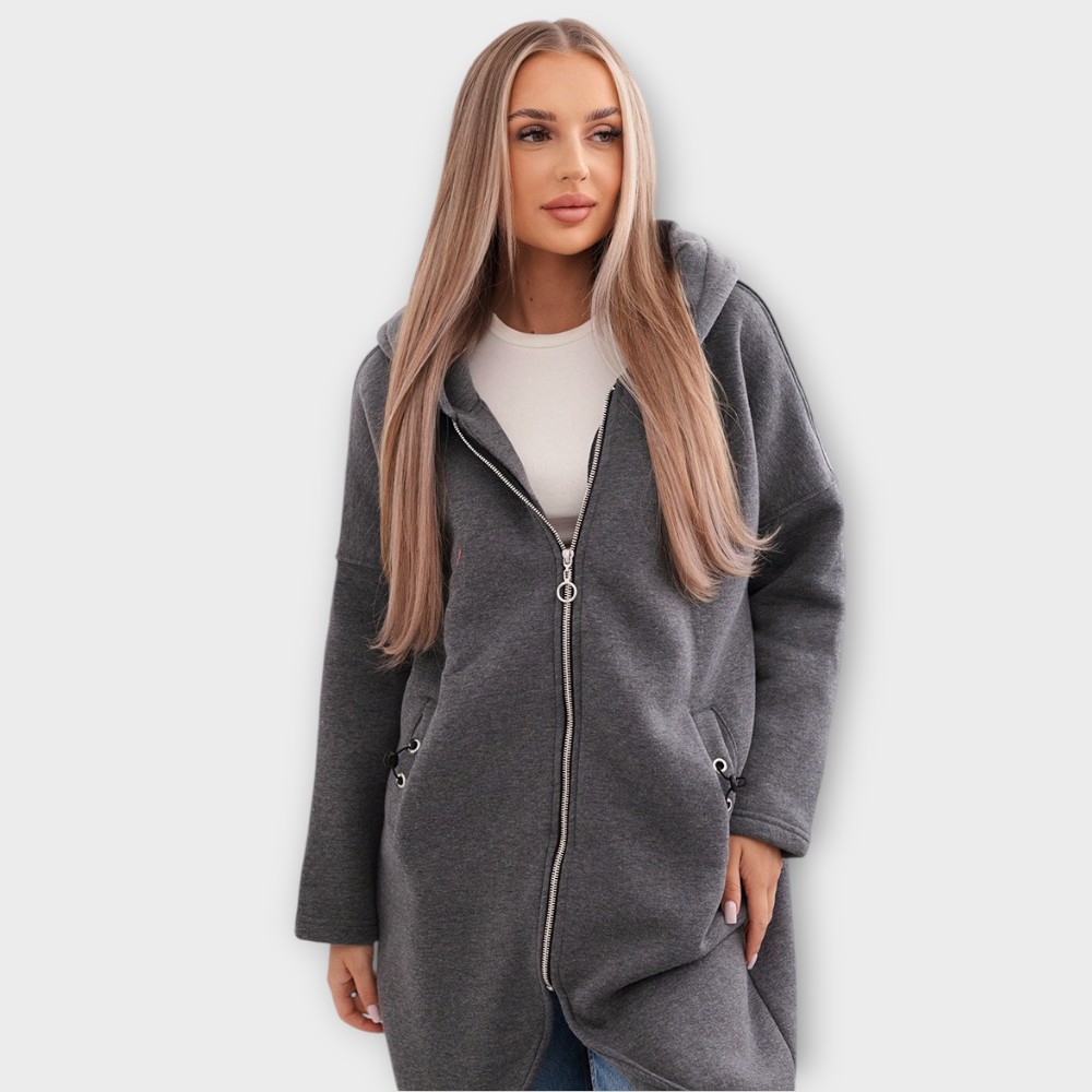 Mõnus pikk soe eest lukuga kapuutsiga sügisjakk/pusa firmalt “Kesi”.