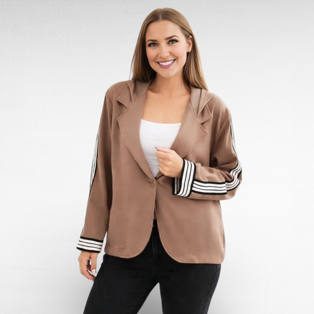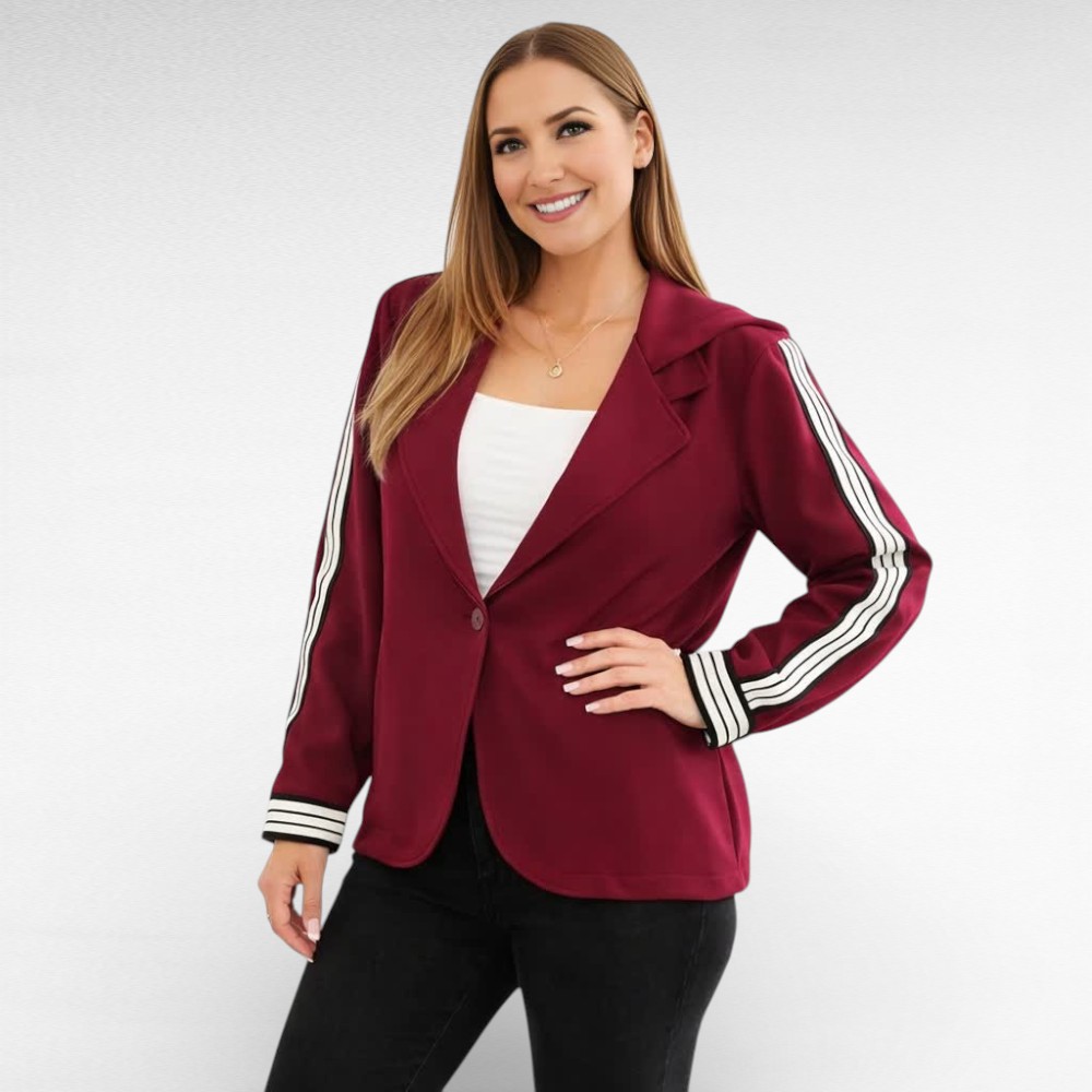 Kui hindad vabadust, enesekindlust ja moekat välimust, on see jakk loodud just sulle. Sportlik jakk avara lõike ja varrukaid kaunistavate kontrasttriipudega sobib ideaalselt erinevate pükstega. Sobib nii linnamelu nautimiseks, sõbrannadega kohvitamiseks kui ka vabamas stiilis töö- või ärikohtumisteks.