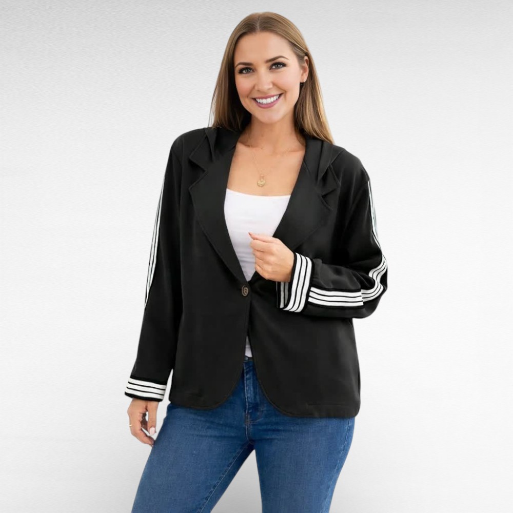 JA.127 – Stiilne triibumustriga kapuutsiga jakk/dressipluus