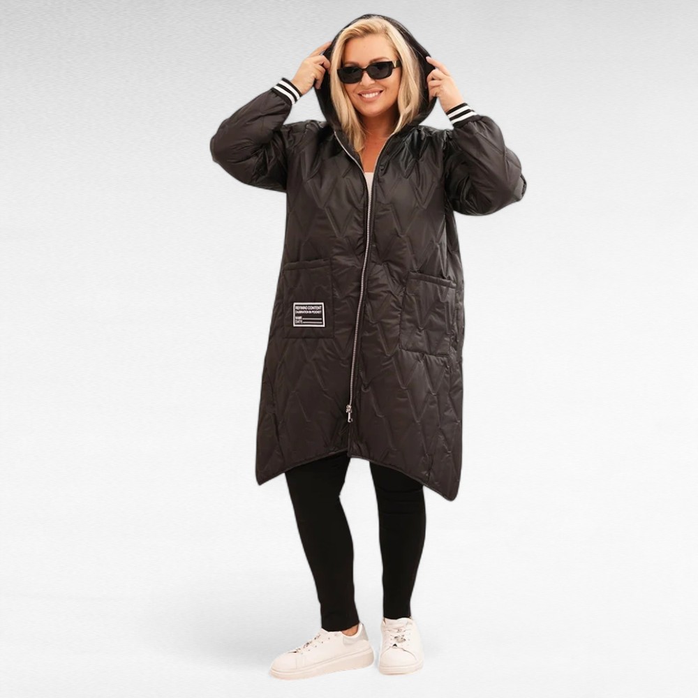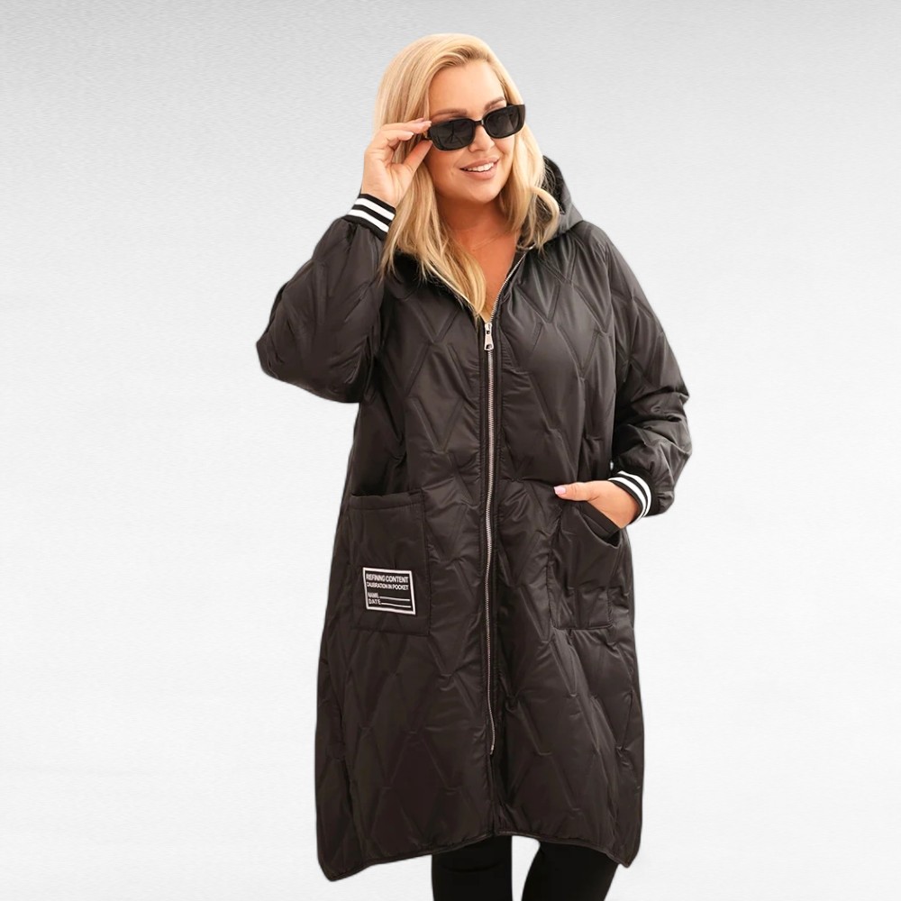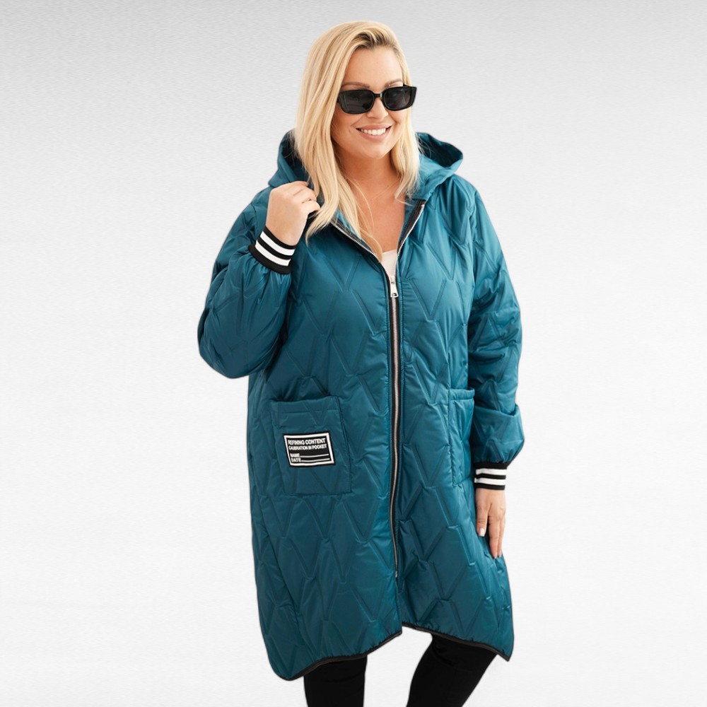 See pluss-suuruses tepitud sügisjope on ideaalne valik jahedamateks päevadeks. Kerge, seest vatiiniga, hästi soojust hoidev materjal pakub mõnusat kaitset tuule ja külma eest, samas kui elegantne lõige lisab riietusele stiili.