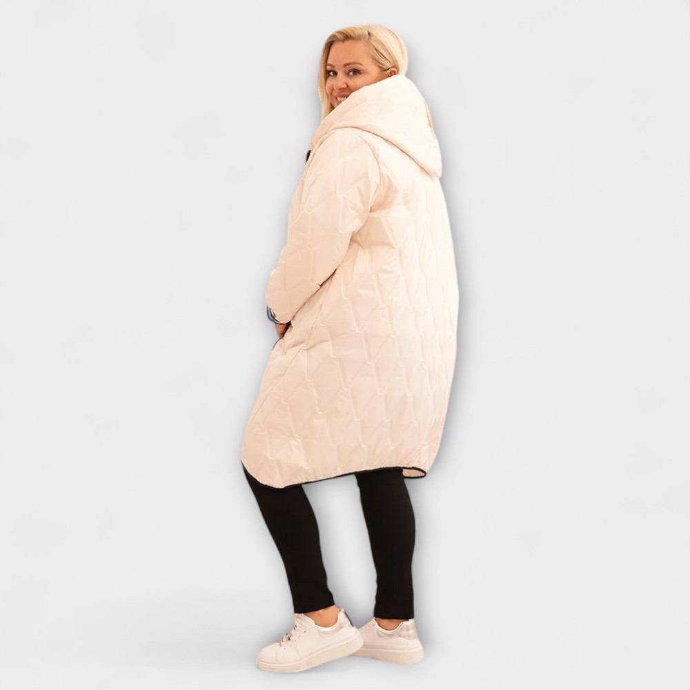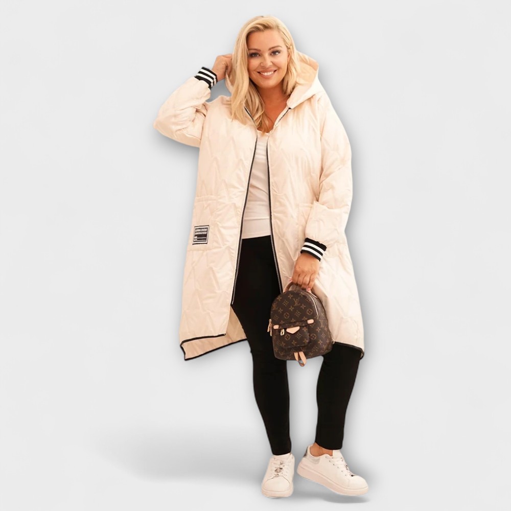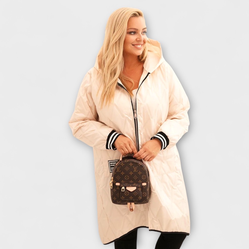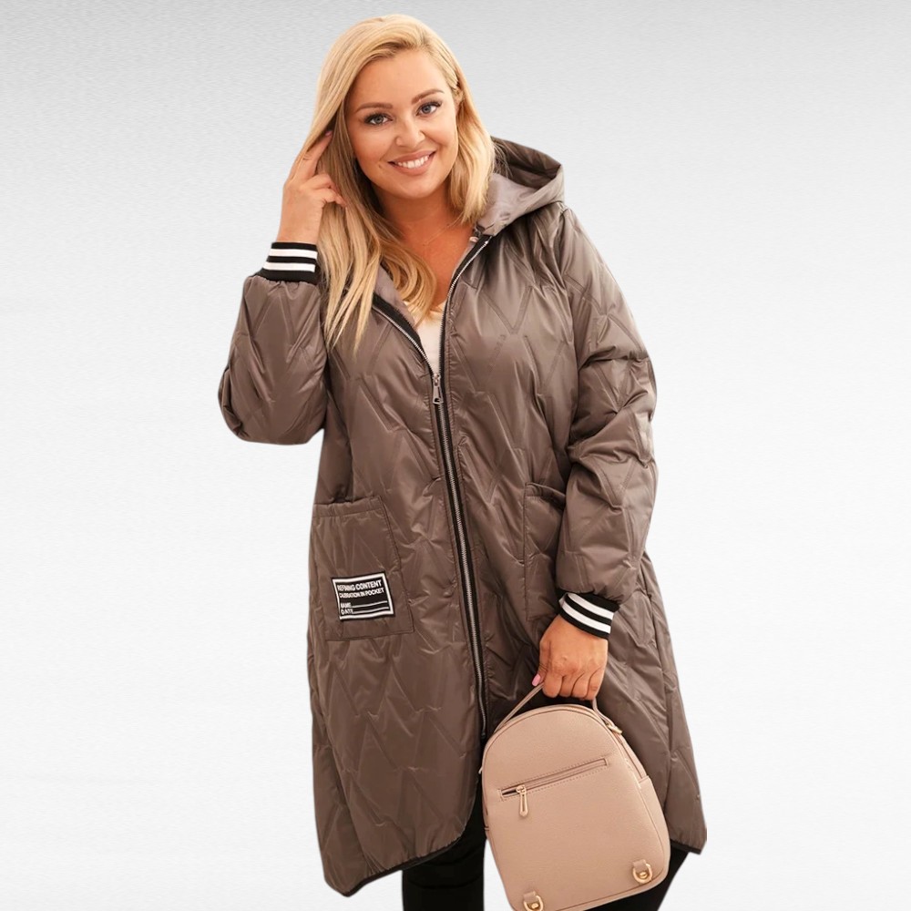 See pluss-suuruses tepitud sügisjope on ideaalne valik jahedamateks päevadeks. Kerge, seest vatiiniga, hästi soojust hoidev materjal pakub mõnusat kaitset tuule ja külma eest, samas kui elegantne lõige lisab riietusele stiili.