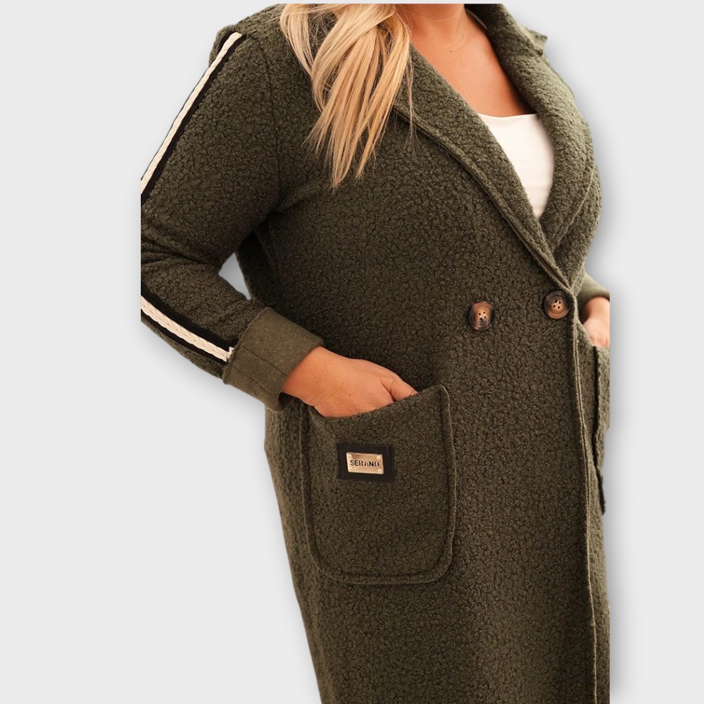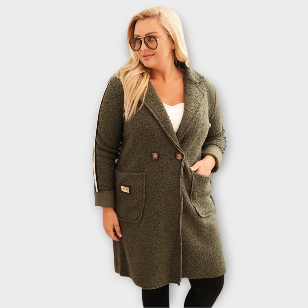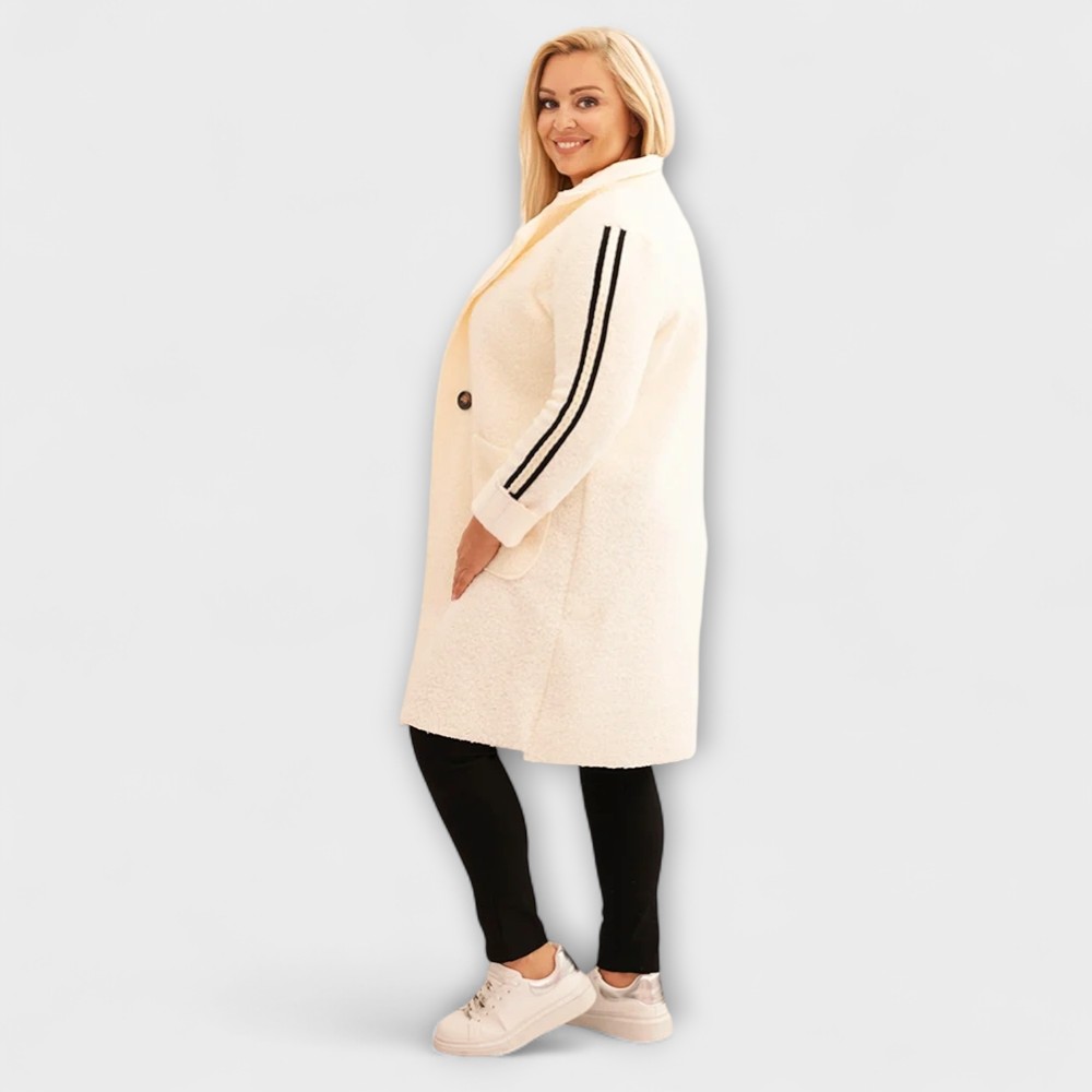 JO.049- Pehme bukleematerjalist triibuliste detailidega sügisjakk naistele