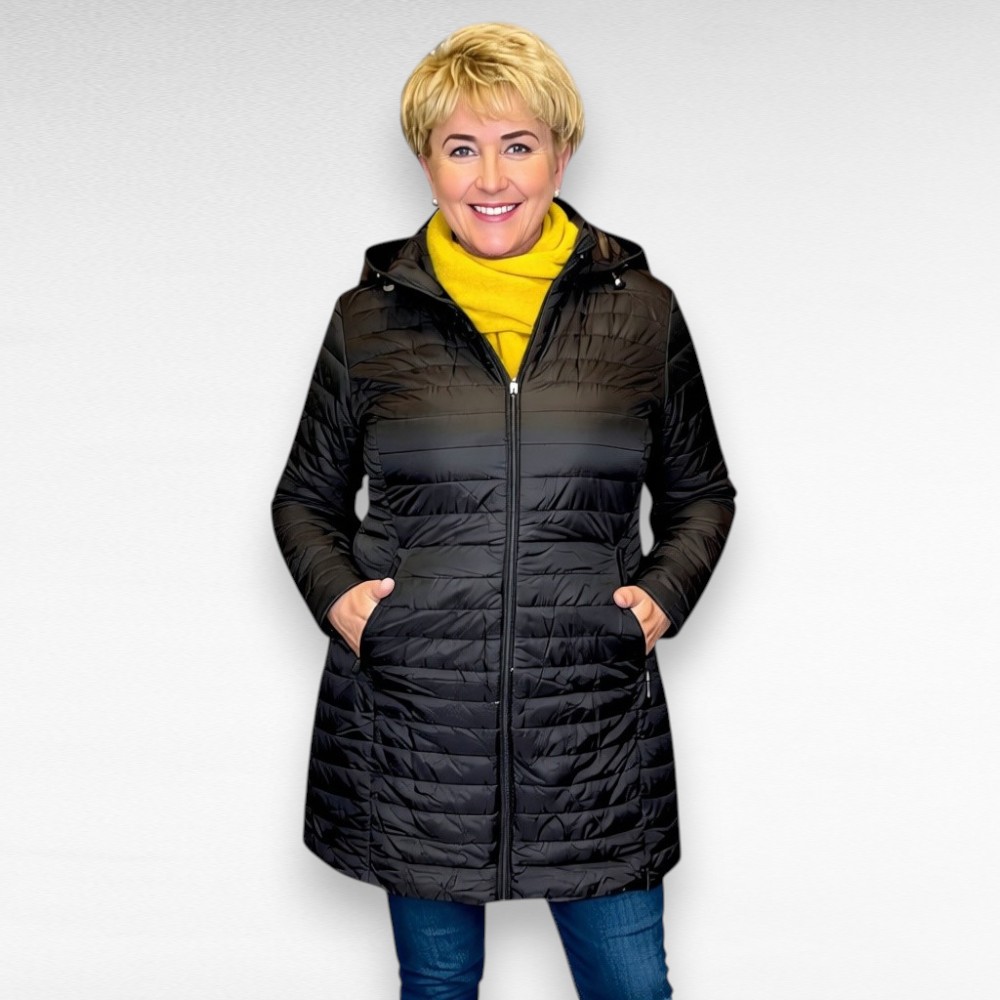Pikem tepitud materjalist seest kerge voodriga must s/k jope firmalt “Victoria Rossi”. Eest kinnitub lukuga, külgedel 2 lukuga taskut. Väga mõnus pehme materjal. Pikkus jääb peaaegu põlvedeni. Jopel on eemaldatav kapuuts. Jope on väga kerge, kuid on mõnusalt soe.