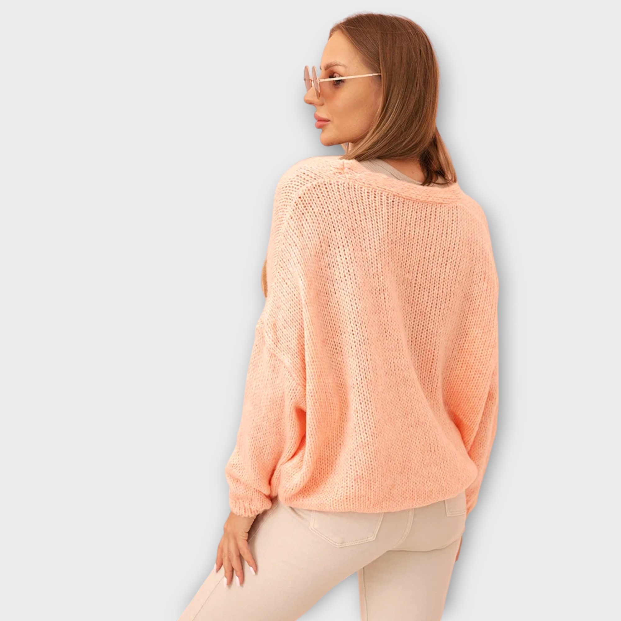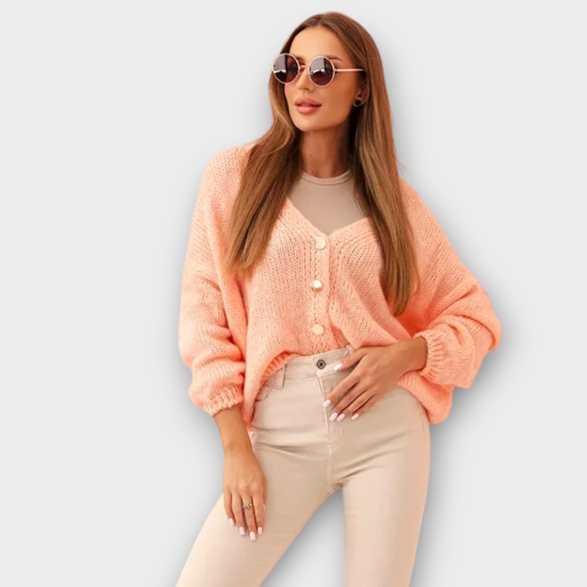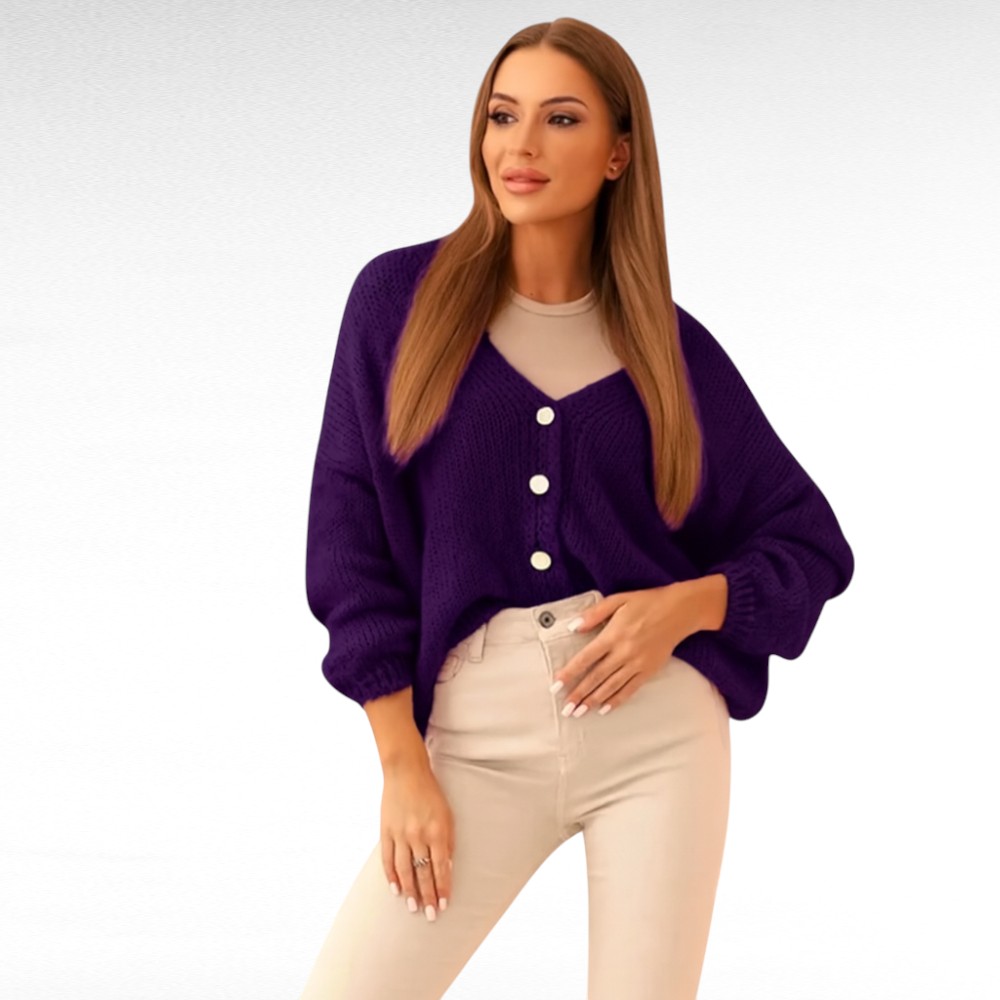 See kardigan on loodud naisele, kes soovib, et tema riietus oleks samaaegselt mugav ja kaunis. Pehme kudum paitab nahka, hoides sind soojas jahedatel päevadel, samas kui avar lõige ja V-kaelus lisavad kerget elegantsi.