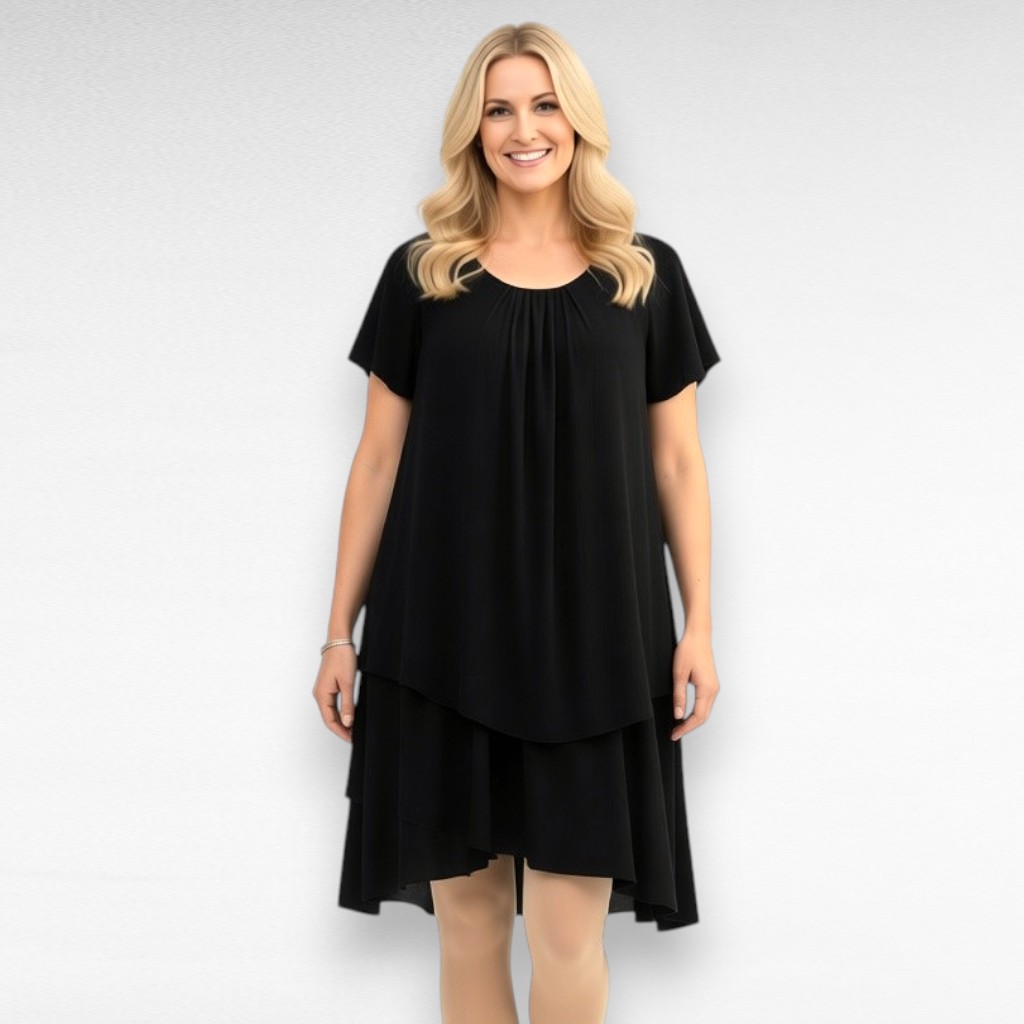 Kahekihiline kortsuriidest alt voodriga suvekleit firmalt “Cellbes”. Tagant on veidi pikem kui eest. Tegumood läheb alt laiemaks, sobib ka kurvikamale figuurile. Väga kavala tegumoega kleit, kõik varjab ära, mida näidata ei raatsi.
