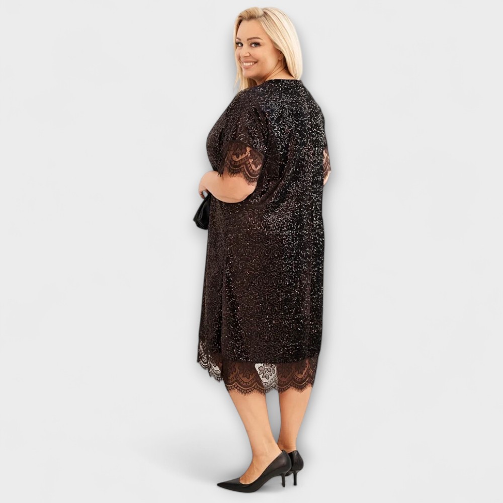 Kui otsid kleiti, mis ühendab naiseliku elegantsi, mugavuse ja enesekindluse, sees on see pluss-suuruses sätendav kleit loodud just sulle. Kaunis, kuid samas praktiline mudel toob välja sinu parimad jooned, pakkudes samal ajal liikumisvabadust ja kandmismugavust kogu õhtu vältel.