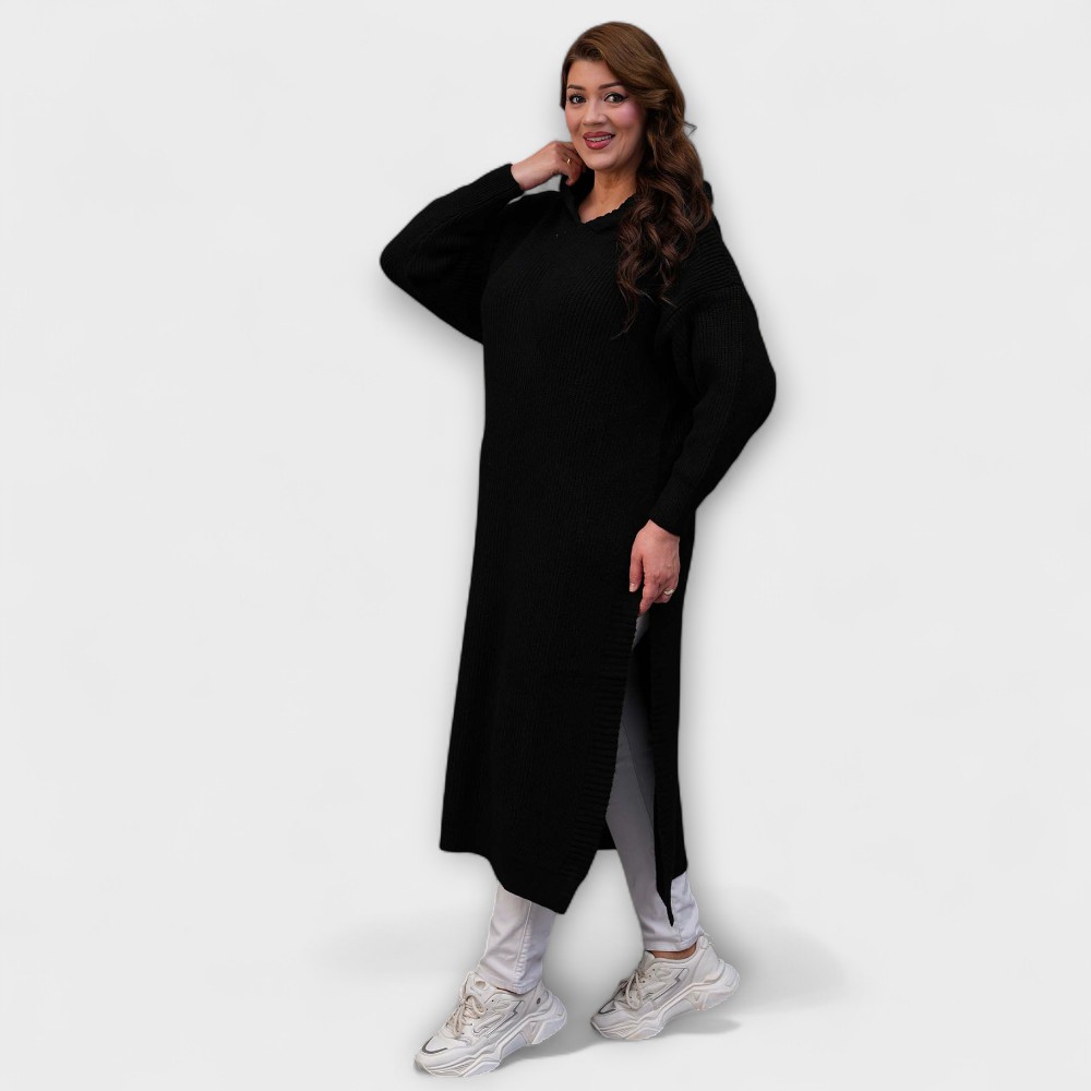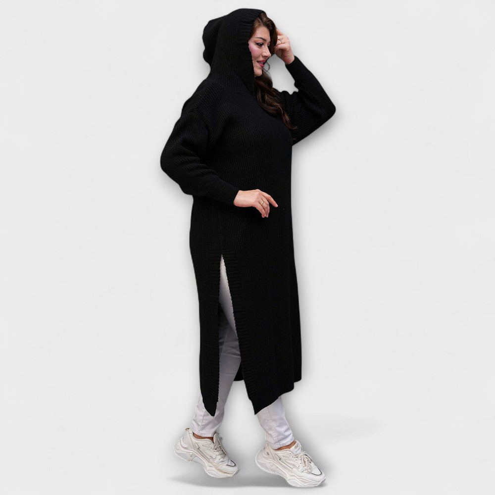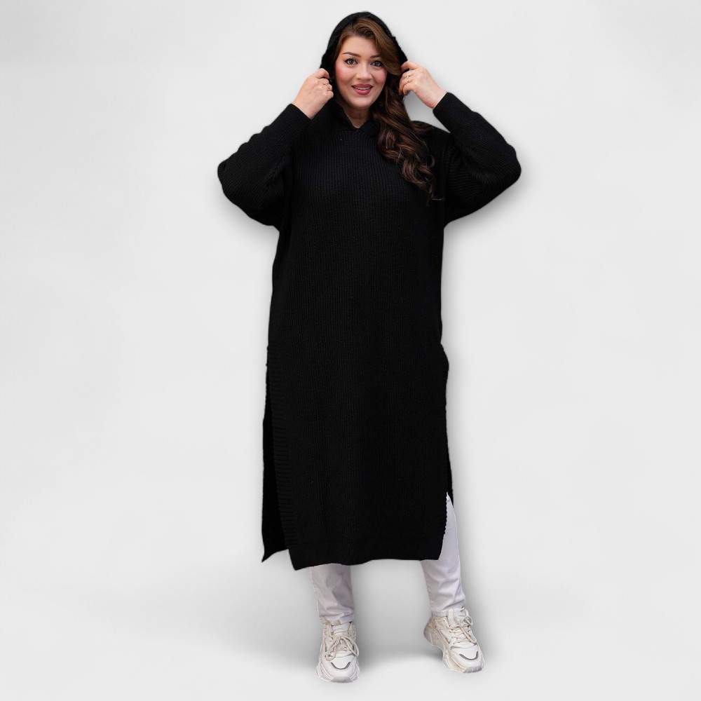 KL.377 -Stiilne pikk kapuutsiga villasegune kootud hõlst/kleit