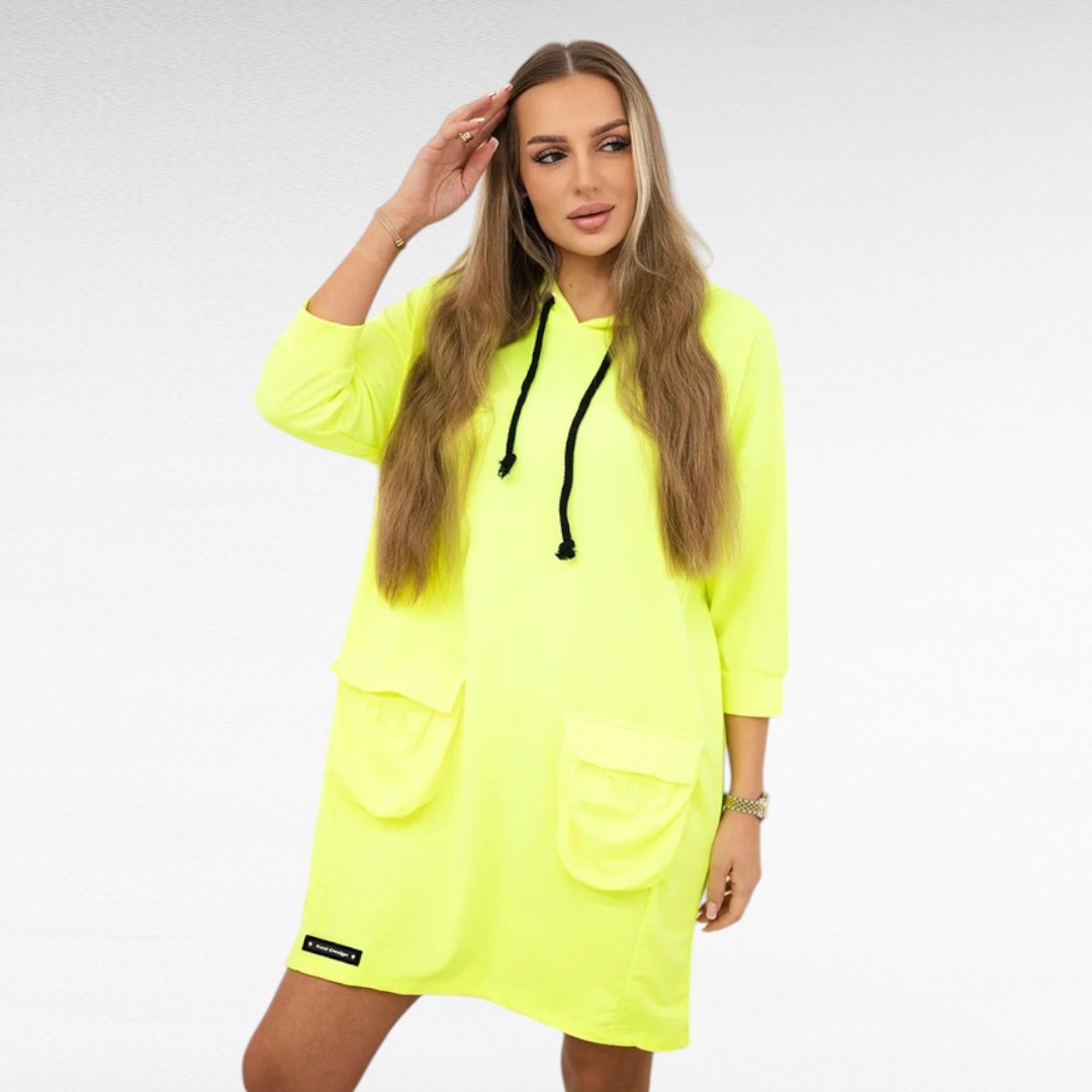 Mugavad kimonolõikega kapuutsiga lühemad õhemad dresskleidid. Ees kaks kroogitud taskut. Kolmveerandpikkusega varrukad, õlaosa on pikendatud. Kaeluse ääres efektsed mustad paelad. Allääres väike embleem “Kesi Disain”.