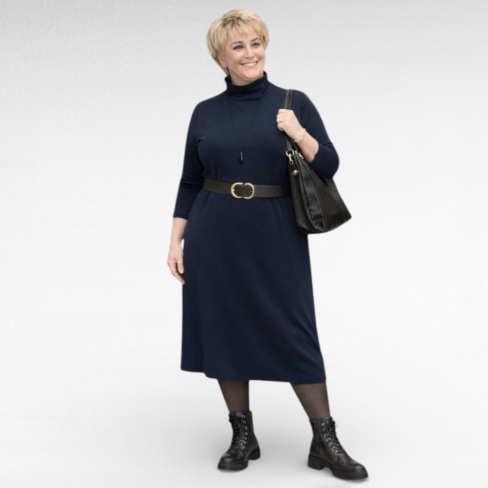 Mugav stretchikas kõrge kaelusega pikkade varrukatega polokleit Inglismaalt firmalt “BPC Collection”. Pikkus jääb umbes poole sääreni. Mõnus igapäevane kleit.