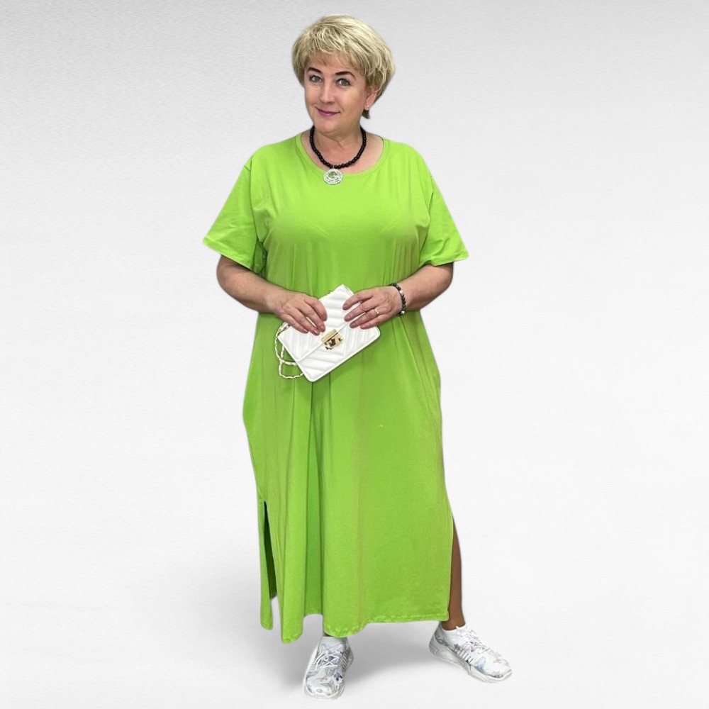 “Mariette” on kerge ja praktiline pikk dresskleit, mis sobib hästi soojade ilmadega kandmiseks. Valmistatud hingavast ja nahasõbralikust puuvillasest materjalist, pakub see rõivas mõnusat kandmiskogemust terve päeva vältel.
