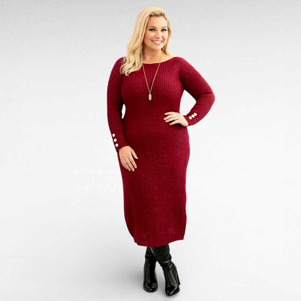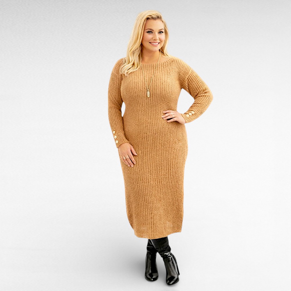Avasta kleit, mis ühendab mugavuse ja stiili. See pluss-suuruses kleit on loodud naisele, kes soovib igapäevaselt tunda end nii enesekindla kui ka naiselikuna. Pikem, voolujooneline sooja kampsunkleidi lõige rõhutab kaunilt siluetti, samas kui elastne soonikkoes kangas kohandub kehaga ja tagab liikumisvabaduse.
