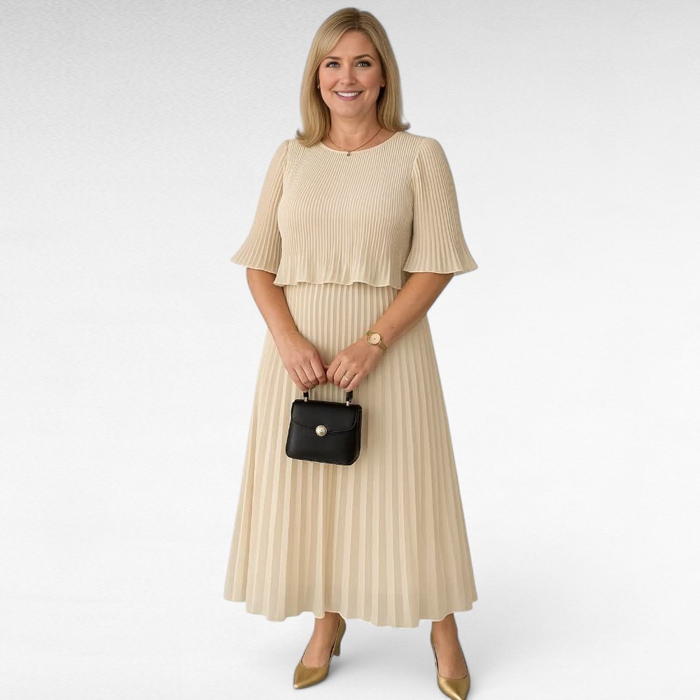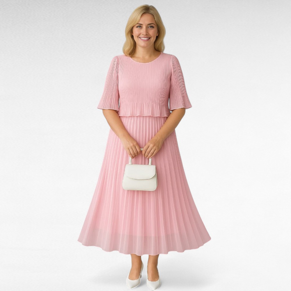 Alt laienevad poolpikad plisseeritud varrukad – lisavad kleidile õhulist ja romantilist võlu.