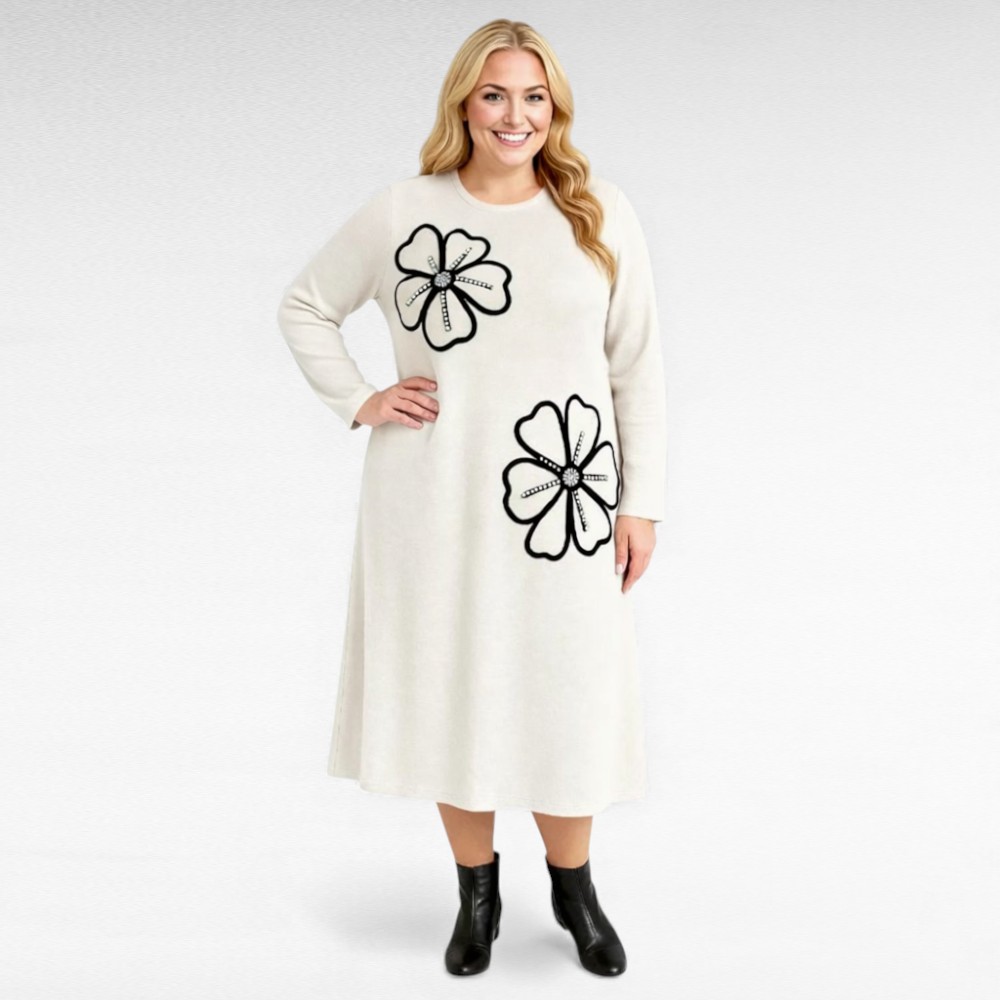 Pluss-suuruses naiste kleit efektse suure lillemustriga