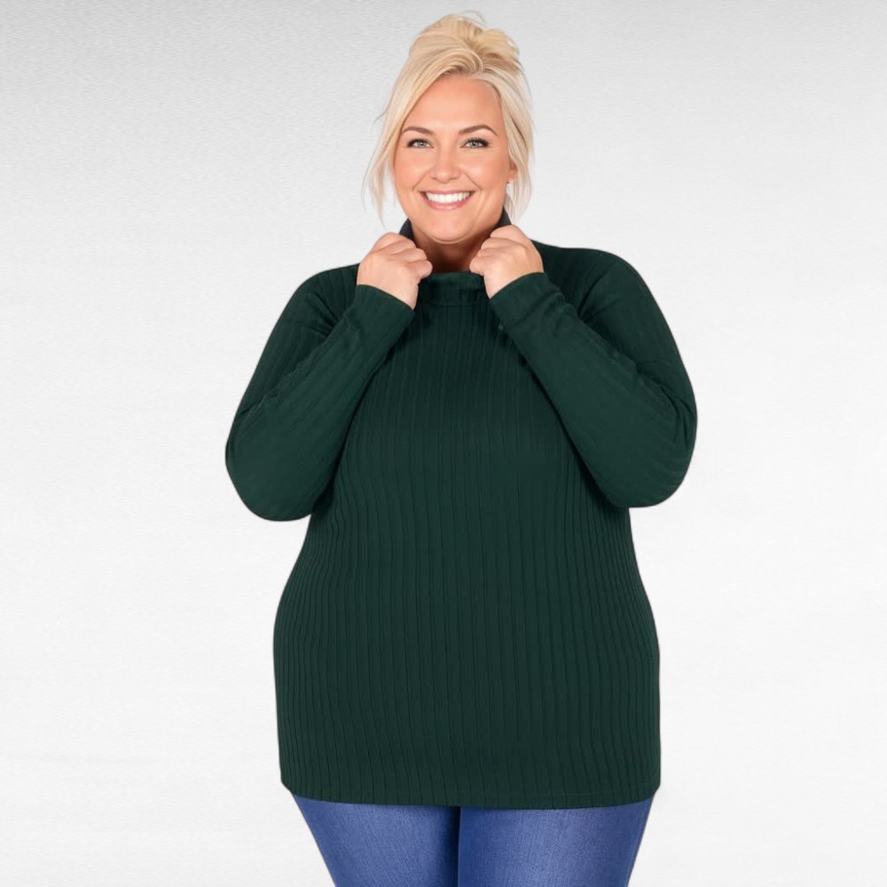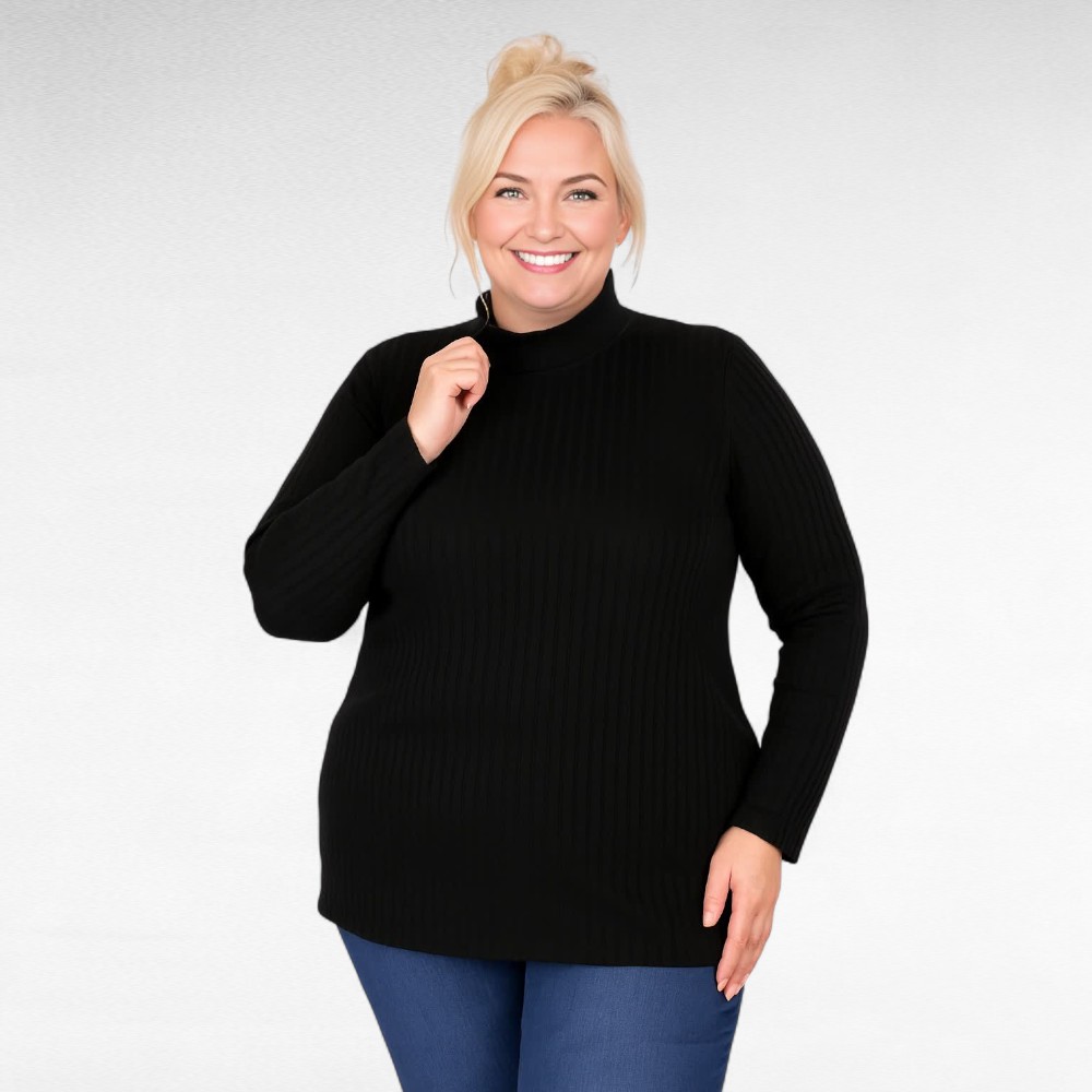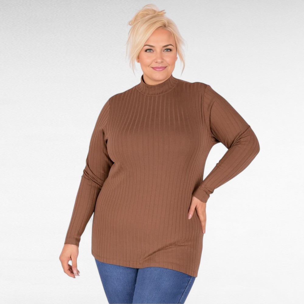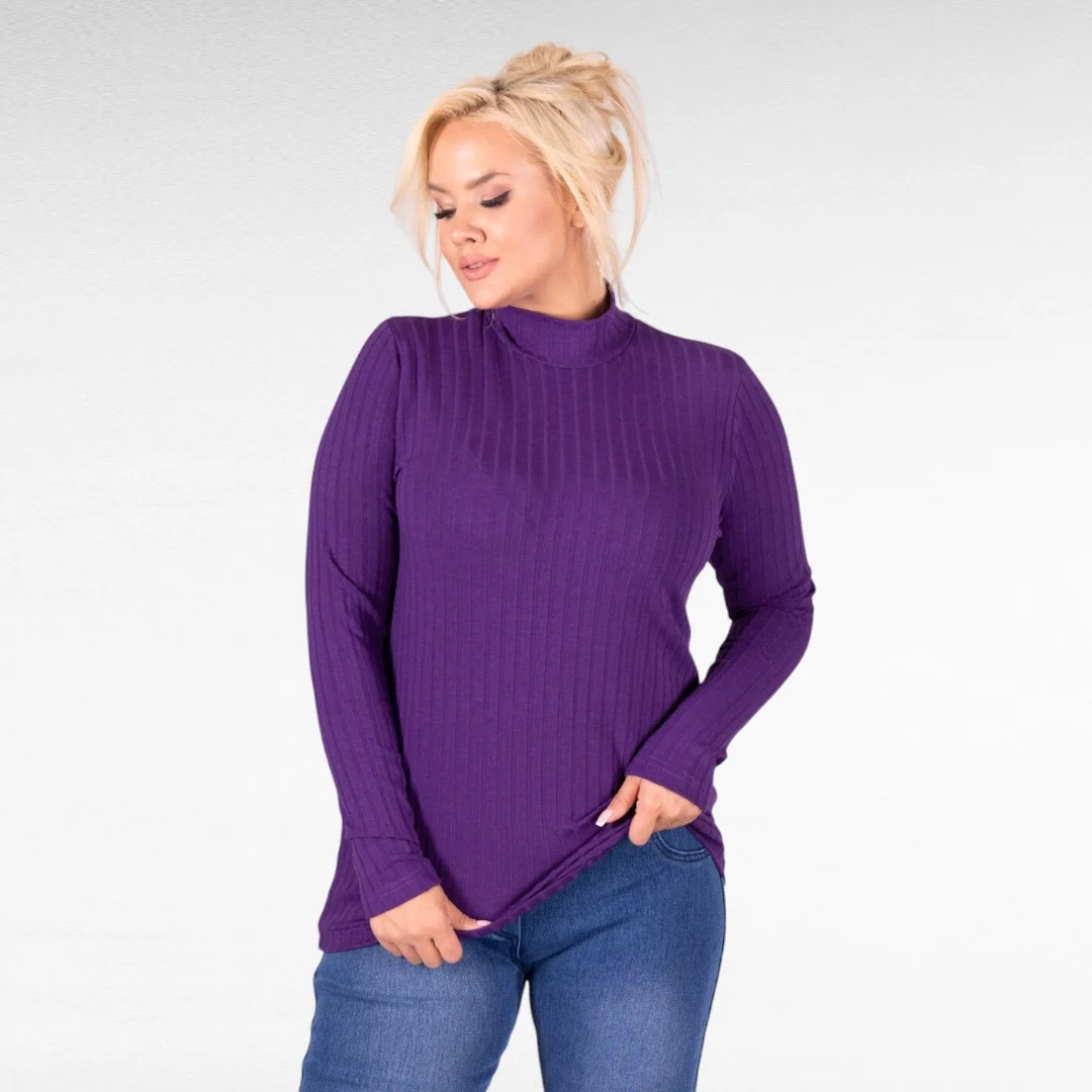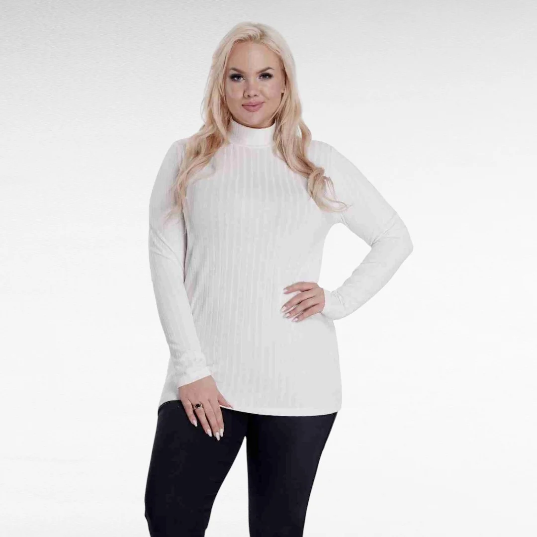 Naiselik ilusa triibulise koemustriga pehme kõrge kaelusega pikkade varrukatega sviiter firmalt “Zentex”. Sobib hästi sügisilmadega kandmiseks.