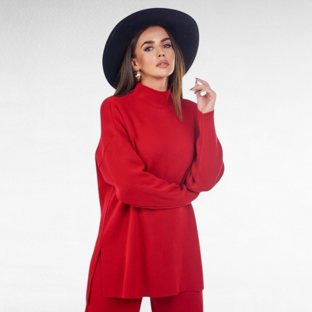 Kvaliteetne masinkootud soliidne sviiter firmalt “Kesi”-pikem avar pikendatud õlaosaga sviiter  on kõrge kaelusega, mis on vabalt ja ei poo. Külgedel väikesed lõhikud ja tagant on natuke pikem kui eest.  Sobib nii kontorisse, vabal ajal kui pidulikul puhul kui mõned ehted juurde lisada.