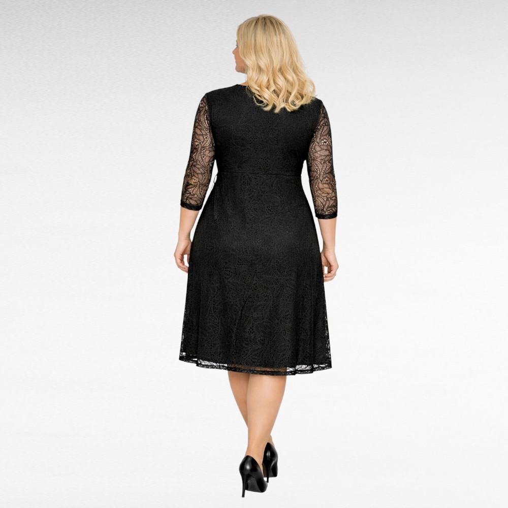 Kleit „Gloria“ on loodud hetkedeks, mil soovid tunda end rahulikult enesekindla ja kaunina. Üleni must pits loob sügava ja elegantse mulje, samal ajal kui pehme vooder kehaosas annab mugavuse ja kindla tunde. V-kaelusega hõlmiklõige toob esile naiseliku joone ning küljega kokku õmmeldud hõlmad püsivad kaunilt paigal kogu õhtu vältel.