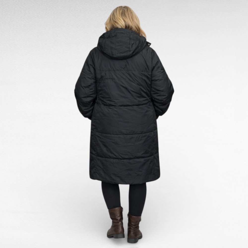 Raglaanlõige sobib suurepäraselt ka pluss-suurusele – mantel istub mugavalt õlgadel, ei piira liikumist ja langeb kehal kaunilt. Ühes tükis kapuuts kaitseb tuule ja vihma eest, varrukaotste soonik hoiab külma eemal ning sisemine pika luku ja trukkidega kinnitus sulgeb mantli kindlalt. Taskud lisavad praktilisust igasse päeva. Lukk käib lahti kahtepidi.