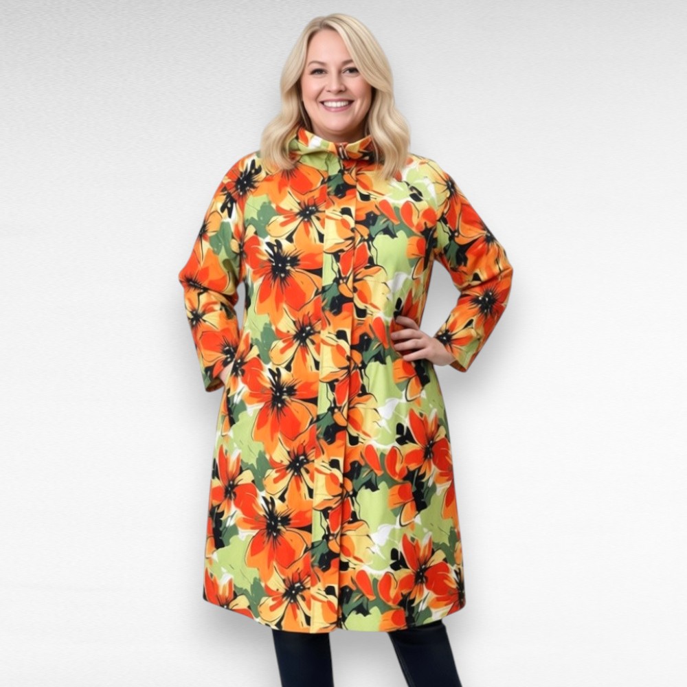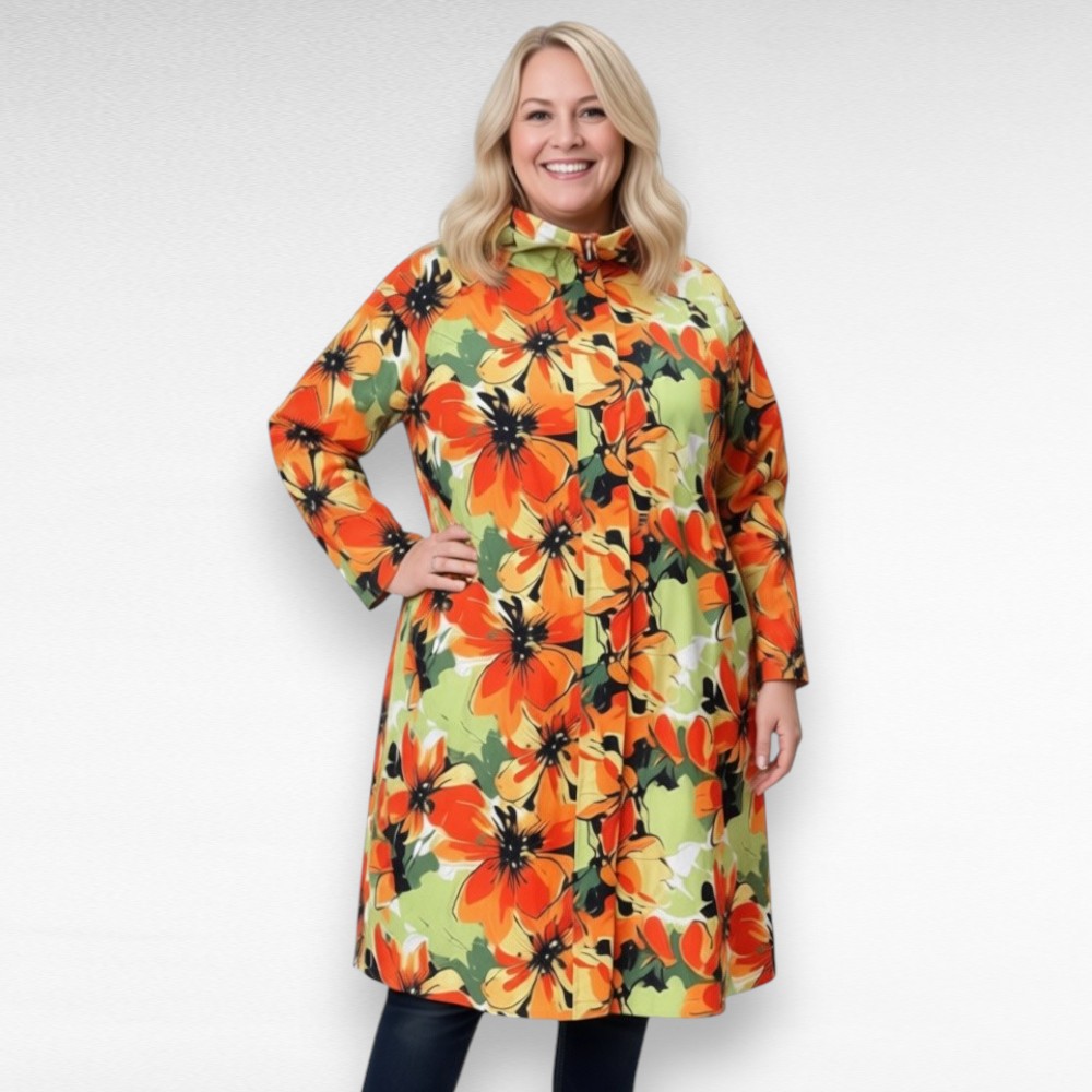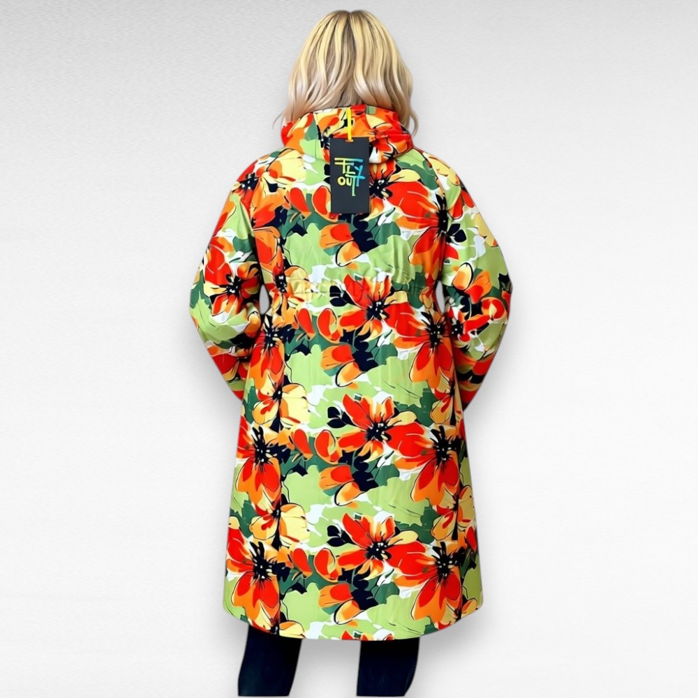 Too oma garderoobi värvi ja energiat selle pilkupüüdva “Fly Out” Itaalia disainiga kevadsuvise jope/mantliga. Helerohelisel põhjal elav oranžikirju lillemuster loob tõeliselt värske ja rõõmsa meeleolu – ideaalne kaaslane just hooajaks, mil loodus tärkab ja päevad muutuvad pikemaks.