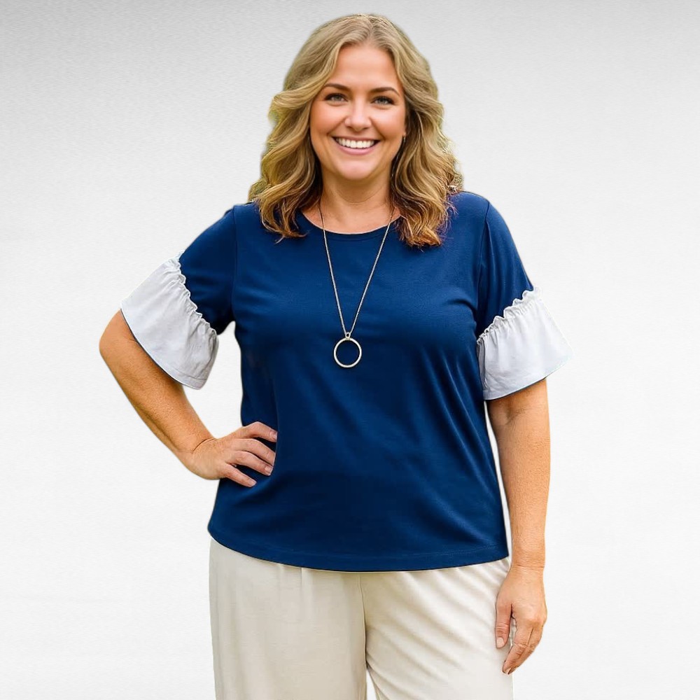 PL.058 – Tumesinine satsiliste varrukatega puuvillane pluus “Ellos”