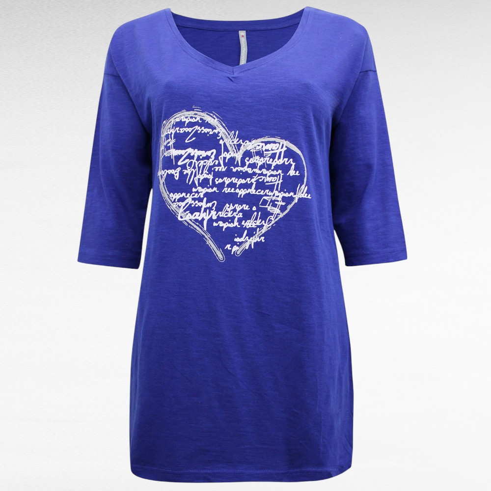 Pehmest venivast nahasõbralikust puuvillasest kangast ilusat elektrisinist tooni rinna pealt suure valge südamemustriga poolpikkade pikendatud õlaosaga varrukatega pikemad pluusid Inglismaalt firmalt “Blancheporte”