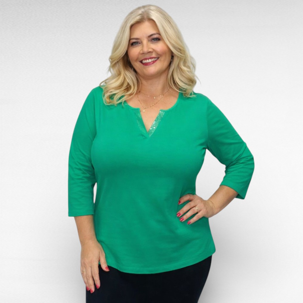 Roheline veidi sätendava V-kaelusega poolpikkade varrukatega puuvillane pluus Inglismaalt firmalt “BPC”. Mugav igapäevane pluus, sobib nii seeliku kui pükstega.