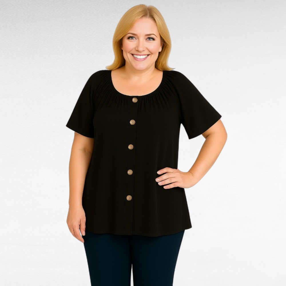PL.214 – Stretchikas eest dekoratiivsete nööpidega must pluus “Evans”