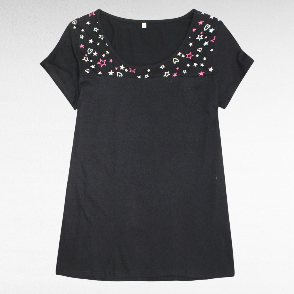 Puuvillane musta värvi tähistaveva mustriga pluus.