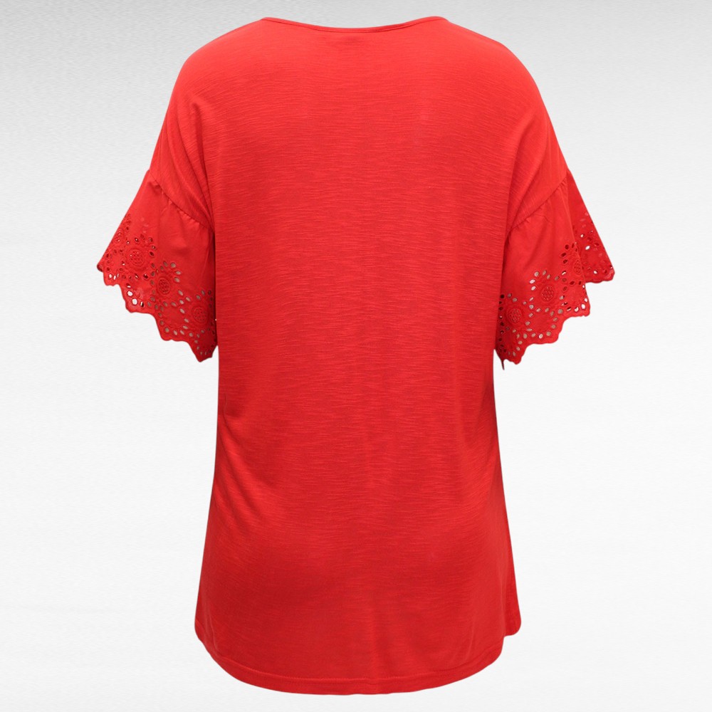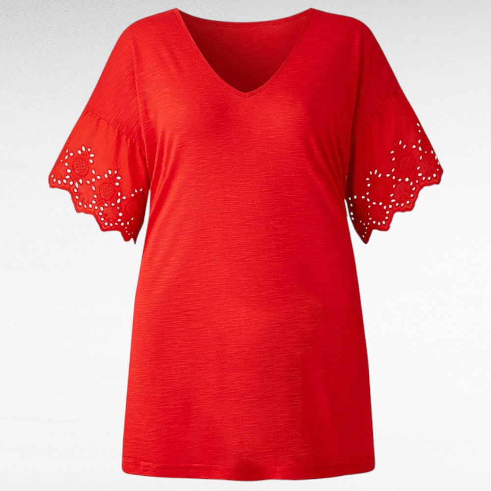 Õhemast viskoosmaterjalist ilusate broderiipitsist varrukaotstega naiseliku V-kaelusega pluus Inglismaalt firmalt “Capsule”.