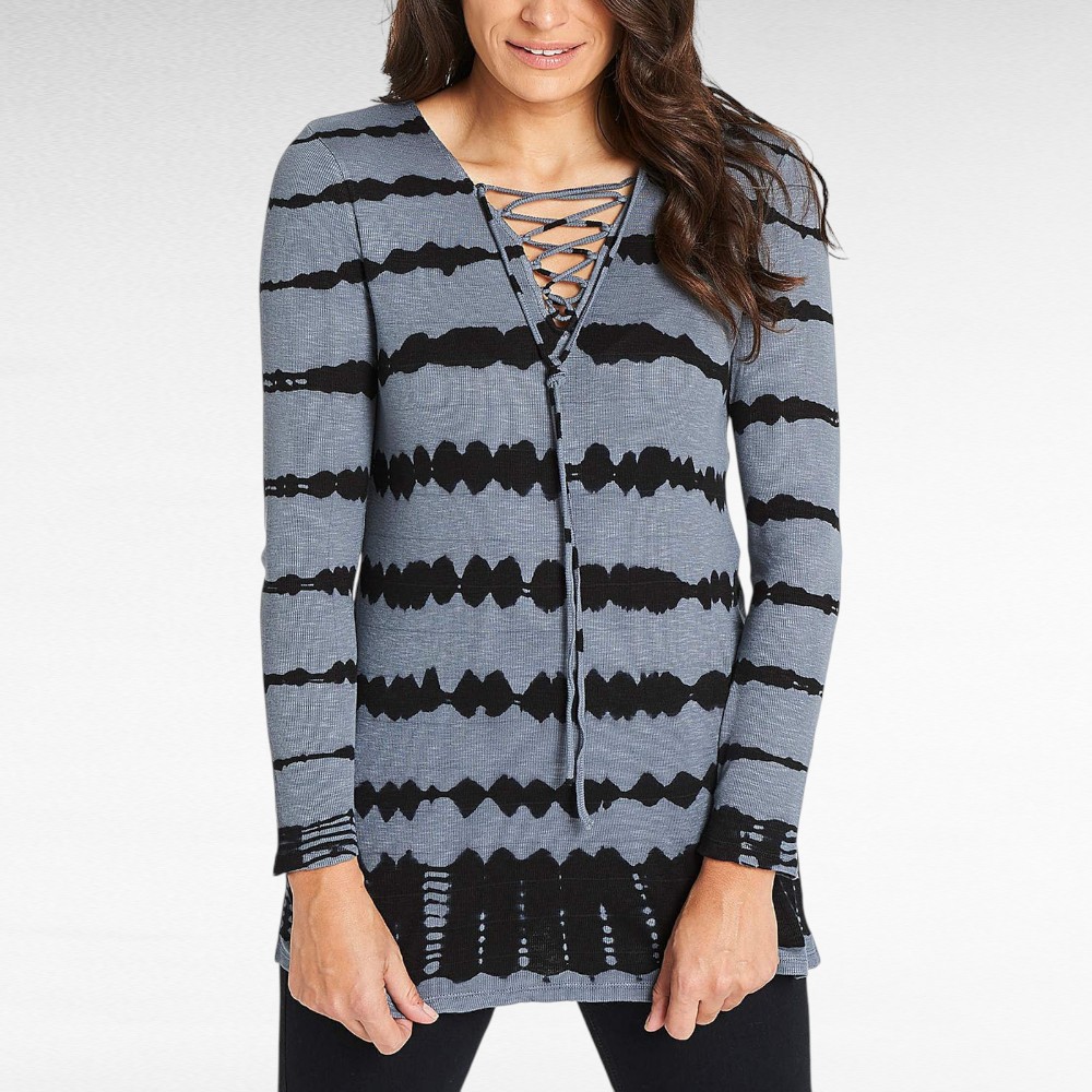 Kenad naiselikud mugavad hallid mustakirju hajutatud mustriga pikemad pluusid Inglismaalt firmalt “Capsule”. Kaeluse ääres paelad, pikad varrukad.