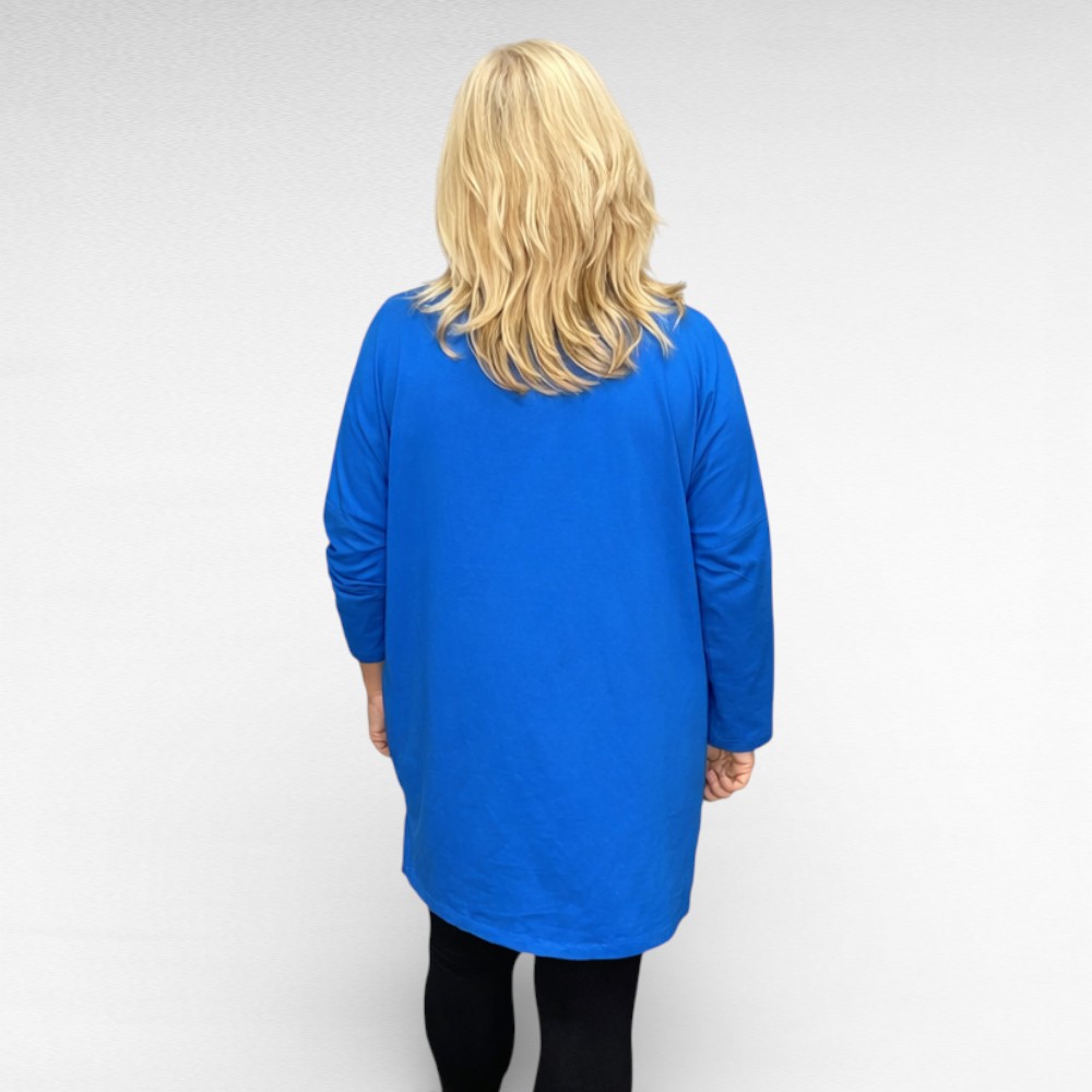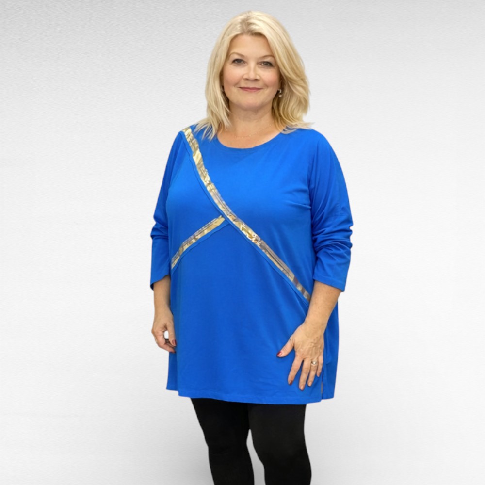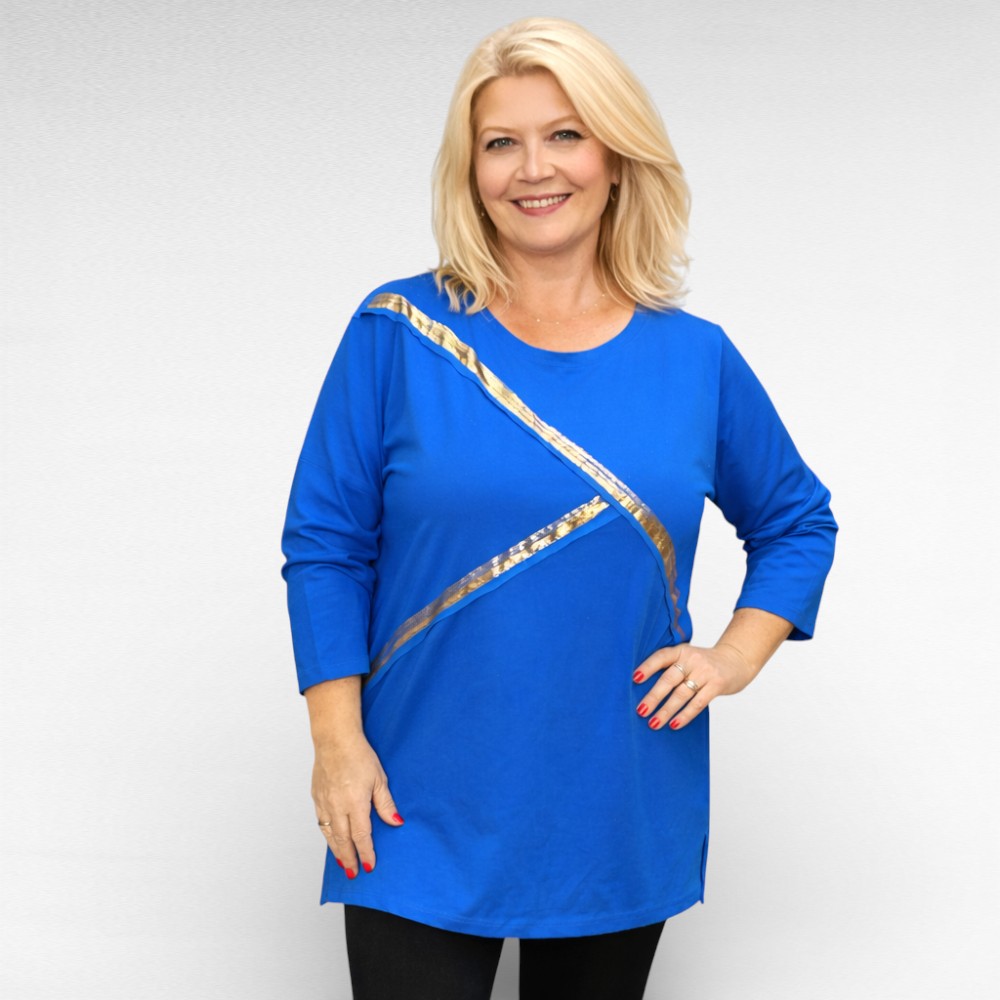 Elektrisinine eest sätendavate triipudega pikendatud õlaosaga poolpikkade varrukatega avara lõikega puuvillane pluus “Wawa”.